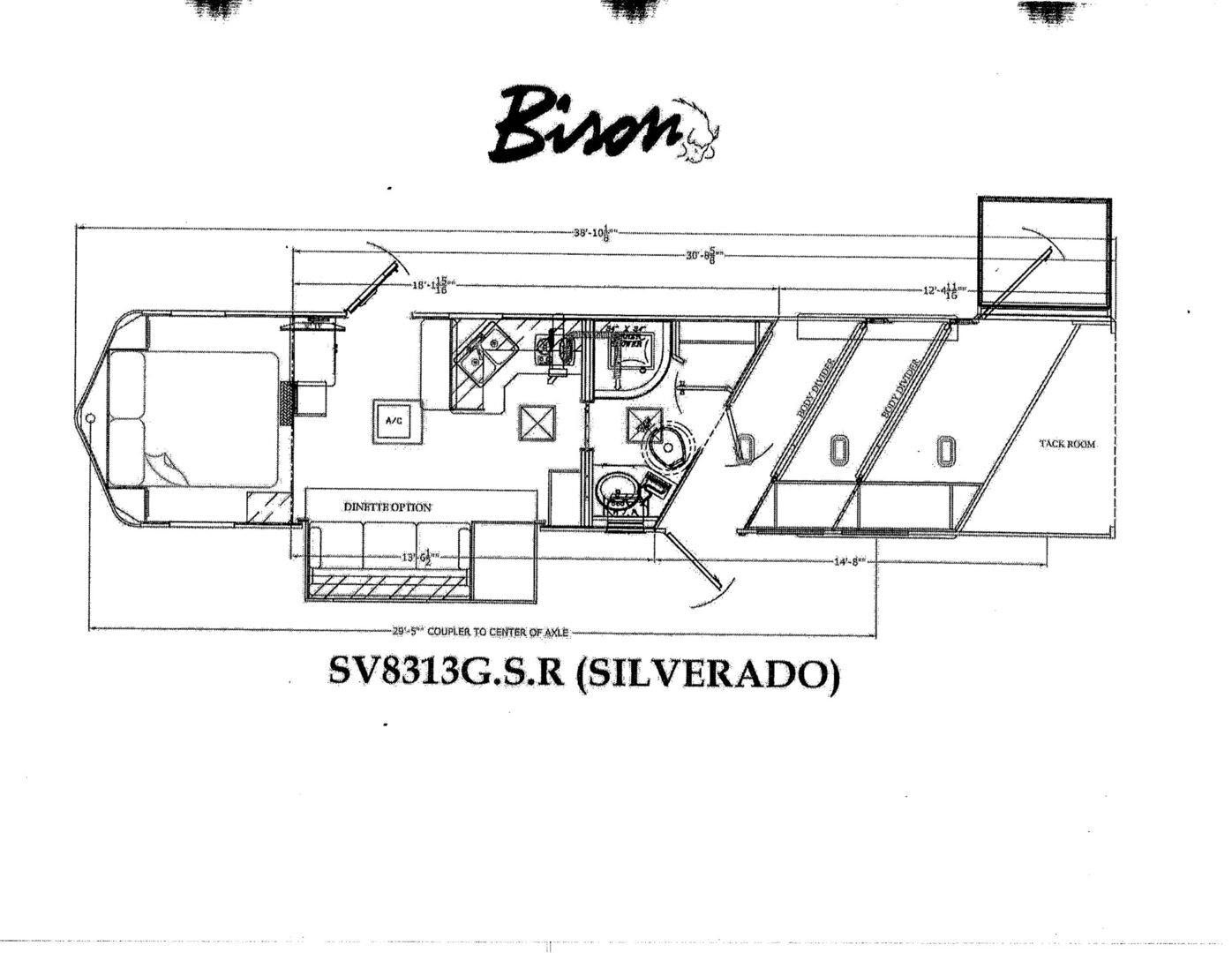 View Inventory: https://leonardtrailers.com/inventory/44910 Bison Silverado is all aluminum 3 horse slant, rear tack and 13’ Living Quarters. This unit is equipped with the standard features plus options. Charcoal exterior, 7000# axles, ST235/85R16”, hydraulic jack dual legs, step at escape door, ducted 15,000 btu air conditioner, stereo with interior/exterior speakers, power awning. Horse area: managers 3h/2 stall, stud wall. Living Quarters: Dapple grey interior, westport mink flooring, grove park ash cabinetry, sofa, dinette, mattress, 24” lcd tv w/locking swing arm. Call for more details. **We believe that these specifications to be accurate. Any discrepancies are unintentional. Please verify information with a Sales Associate prior to purchase.** Stock Number:44910