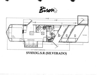 View Inventory: https://leonardtrailers.com/inventory/44916 Bison Silverado is all aluminum 3 horse slant, rear tack and 13’ Living Quarters. This unit is equipped with the standard features plus options. Charcoal exterior, 7000# axles, ST235/85R16”, hydraulic jack dual legs, step at escape door, ducted 15,000 btu air conditioner, stereo with interior/exterior speakers, power awning. Horse area: managers 3h/2 stall, stud wall. Living Quarters: Dapple grey interior, westport mink flooring, grove park ash cabinetry, sofa, dinette, mattress, 24” lcd tv w/locking swing arm. Call for more details. **We believe that these specifications to be accurate. Any discrepancies are unintentional. Please verify information with a Sales Associate prior to purchase.** Stock Number:44916