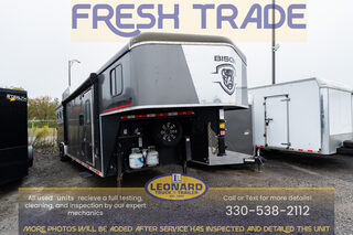 View Inventory: https://leonardtrailers.com/inventory/44885 Stock# 44885 Used 2022 Bison RG8311.S Gooseneck Horse Trailer with Living Quarter General Information Coupler Size: 2 5/16”, Adjustable Roof: Aluminum Primary Color: Charcoal Length: 27’ 6” Width: 8’ Height: 7’ 4” Horse Area Horse Capacity: 3 Type: Slant Load Mats Pads Vents: 3 Lights Mangers Manger Access Doors: 2 Hayrack Rubber Lining: Complete Escape Type: 1 Full Walk Out Tack Area Type: Rear Collapsible Contents: Saddle Racks Hooks Brush Box Blanket Bar Door / Gate Ramp Over Double Doors Living Quarters Size: 11’ Interior Colors: Brown Options: Access to Horse Area Air Conditioning Furnace Sofa Dinette Kitchen Sink Stove Refrigerator Microwave Oven Bath Sink Toilet Shower Slide Out (#1 – Couch & Fridge) Axles & Running Gear GVW: 17,426 lbs Axle Size: 7,000 lbs each of Axles: 2 Tire Size: 16” of Brakes: 4 Brake Type: Electric Suspension: Spring Spare Tire: Yes Jacks: Dual Electric Empty Weight: 11,056 lbs We offer outstanding financing options, accept trades, and can arrange nationwide NO HASSLE delivery! Inquire today for more information! (888) 333-6613 **We believe these specifications to be accurate. Any discrepancies are unintentional. Please verify information with a sales associate prior to purchase.** Stock Number:44885