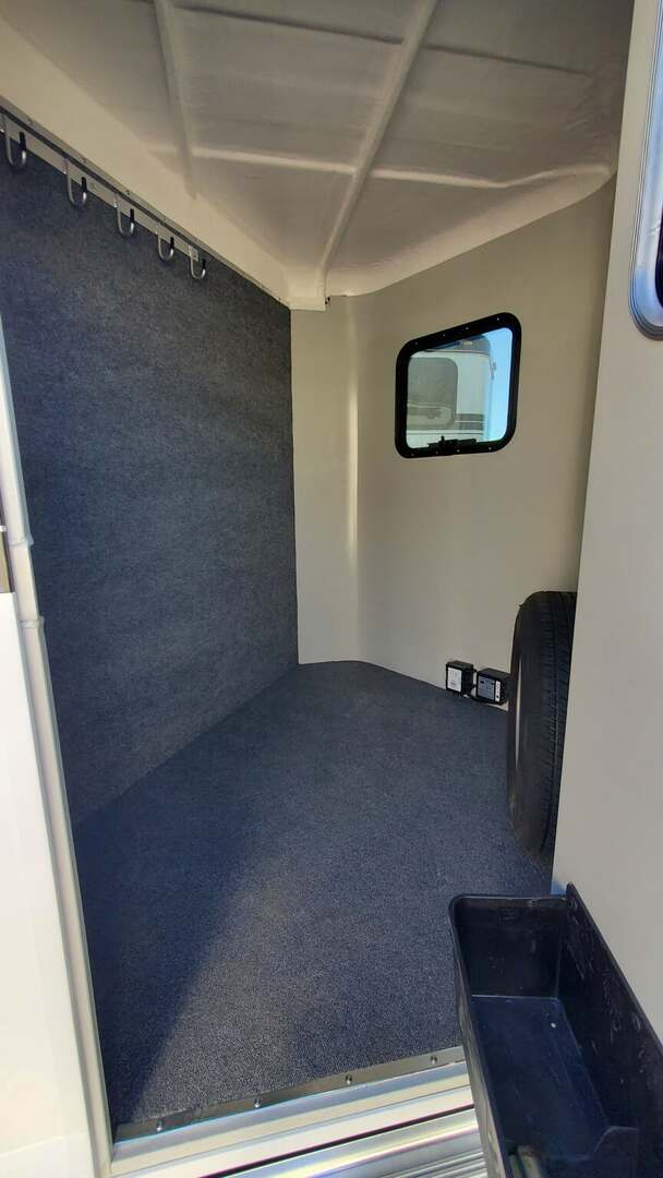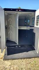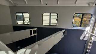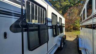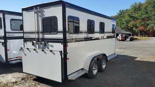 2026 Hawk Model-118 Elite 3-horse slant-load bumper-pull horse trailer with dressing room. Slant-load with escape door. Rear ramp over double rear doors. Rear collapsible tack room. Elite specification offer all the most popular options, including aluminum wheels, full running boards, windows all around, additional padding, and more! Galvanized steel frame with aluminum skins. 1-piece fiberglass roof keep your horse cooler in hot weather. Dexter torsion axles. Call today for additional information!