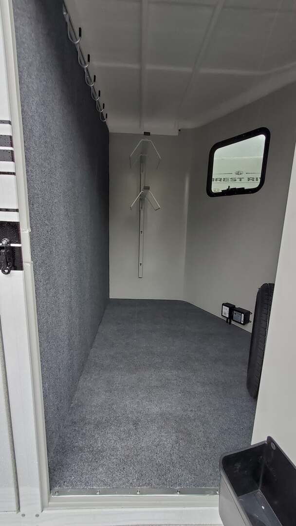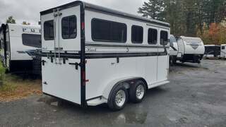 2026 Hawk Model-132 Elite Classic 2-horse bumper-pull horse trailer with dressing room. Heavy duty construction. Galvanized steel frame with aluminum skins. Pressure-treated wood flooring. Extra wide, tall, and long. Elite package offers all of the most popular options including aluminum wheels, additional windows, additional padding, and more. 1-piece fiberglass roof keep your horse cooler in hot weather. Easy lift rear ramp. Dexter torsion axles. Call today for additional information!