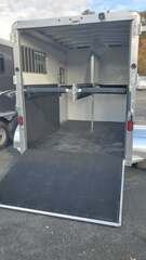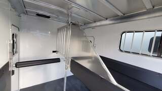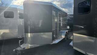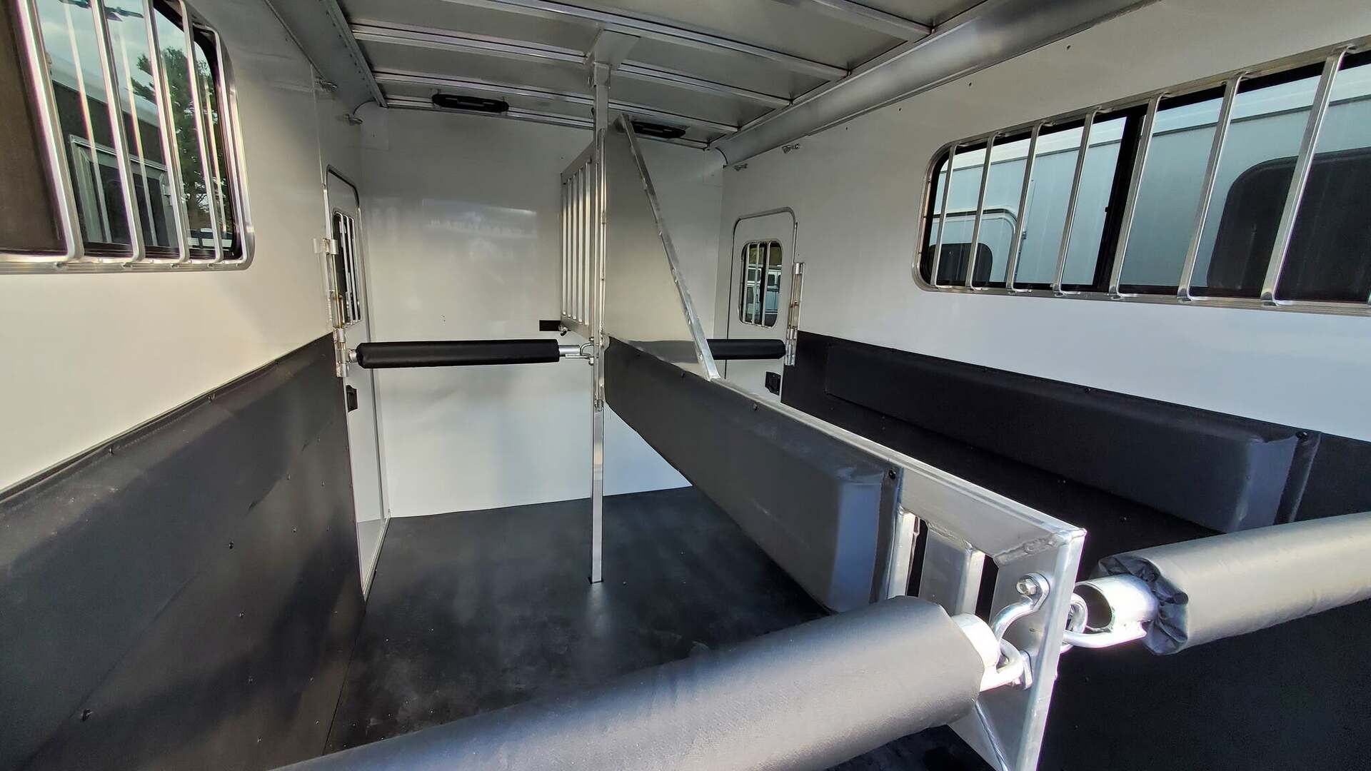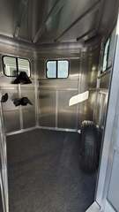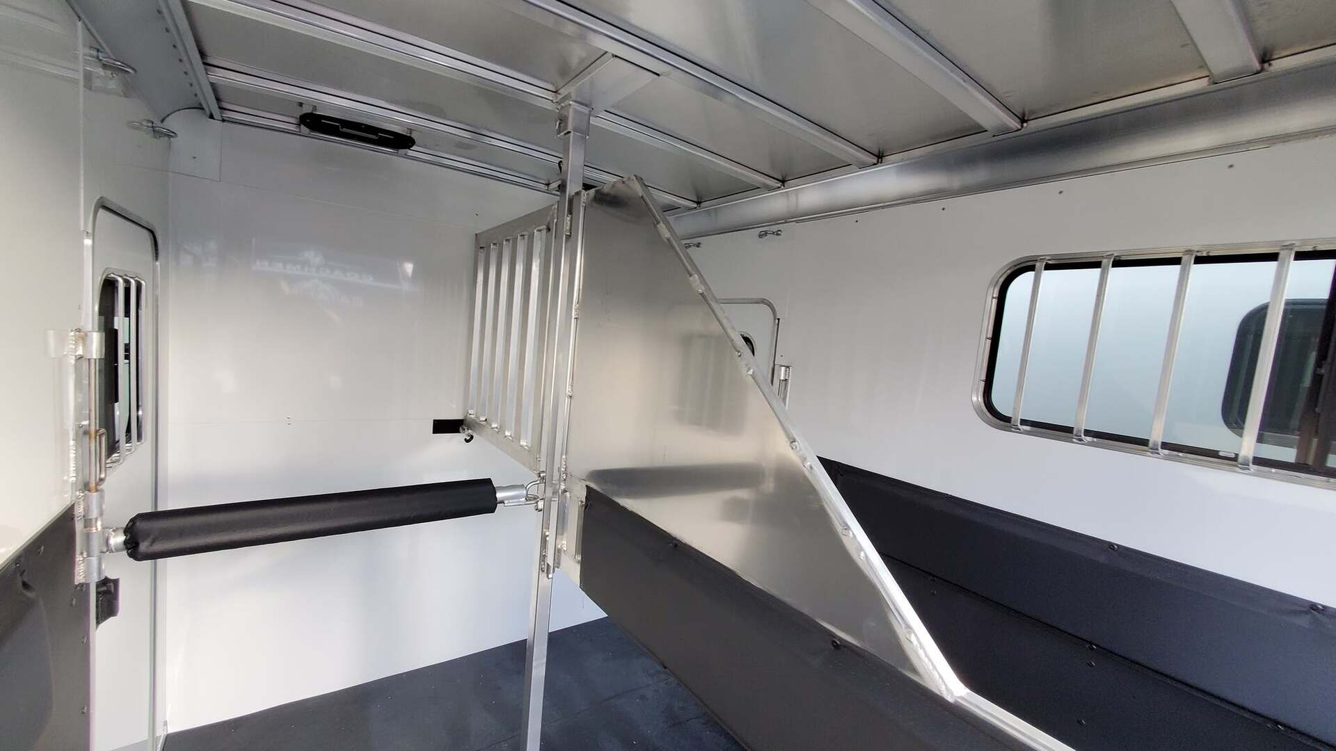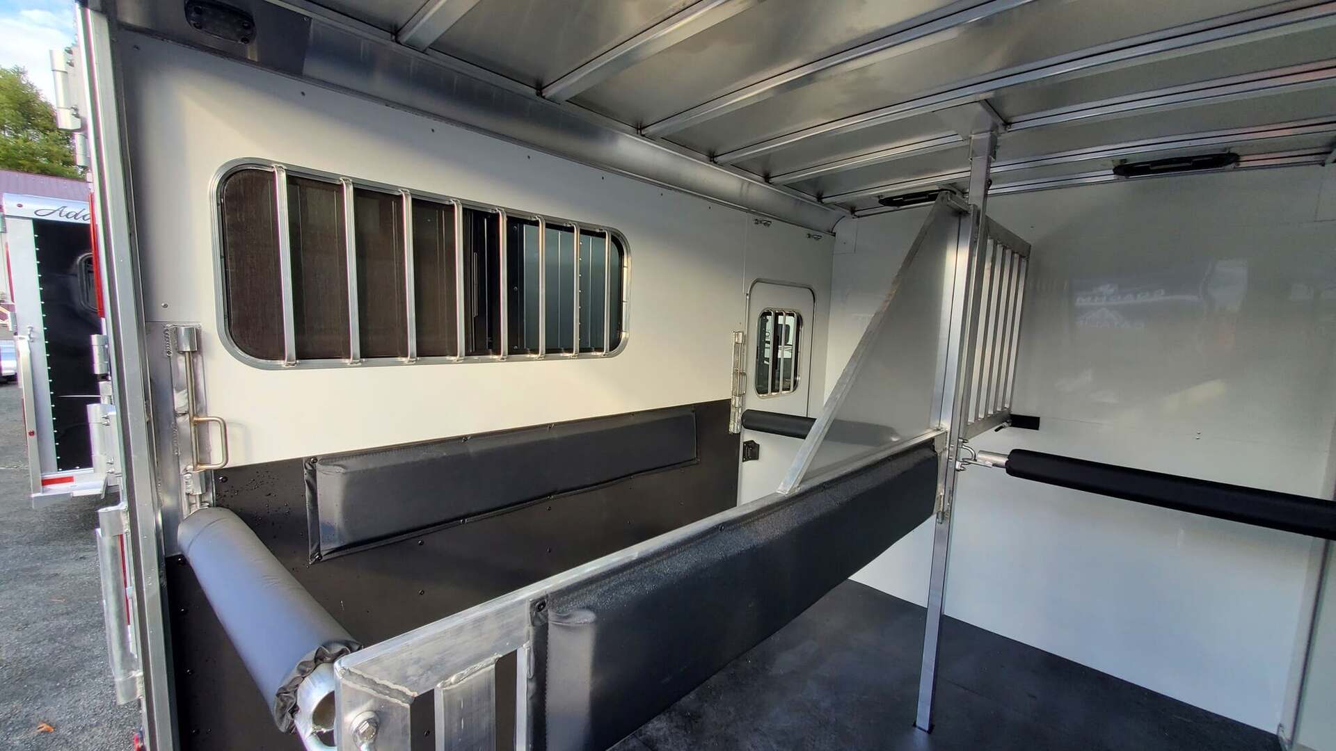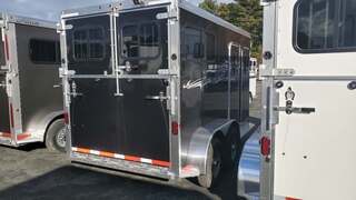 2026 Adam Ju-Lite 2-horse bumper-pull straight-load horse trailer. Amazing value! Safe, rugged, all-aluminum construction with pressure-treated wood flooring. Dexter Torsion Axles. Easy-lift rear ramp. Saddle Racks. Dressing room features deep v-nose design for maximum space. Optional windows in v-nose, and windows in rear doors over ramp. Dual escape doors. Black exterior skins. Call today for more information!
