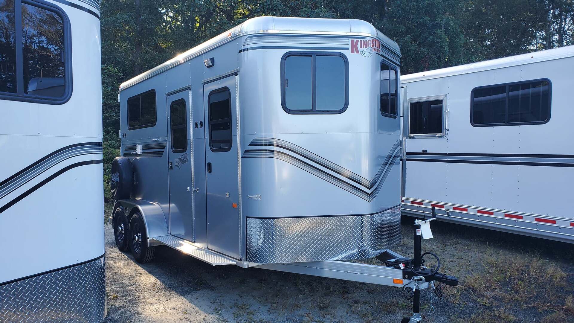 New 2026 Kingston Classic Elite w/ Dressing Room. Legendary name and reputation! Manufactured here in Massachusetts. All aluminum construction. Elite package includes all the most popular features, including additional padding, windows all around, rubber lined walls beside stalls, and more! Spacious dressing room with saddle racks, bridge hooks, and clothing bars. Durable pressure-treated wood flooring with rubber mats. Dual Escape Doors. Easy lift rear ramp. Dexter Torflex Axles. Spare tire. Silver Exterior Skins. Call today for more information!                 Pricing may not include tax, title, prep, documentation, or freight. Please call for details.