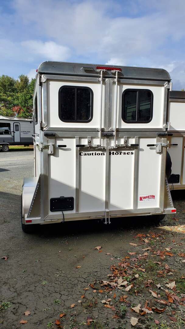 New 2026 Kingston Classic Elite. Legendary name and reputation! Manufactured here in Massachusetts. All aluminum construction. Elite package includes all the most popular features, including additional padding, windows all around, rubber lined walls beside stalls, and more! No dressing room keeps weight and length down. Durable pressure-treated wood flooring with rubber mats. Dual Escape Doors. Easy lift rear ramp. Dexter Torflex Axles. Spare tire. Call today for more information!                 Pricing may not include tax, title, prep, documentation, or freight. Please call for details.