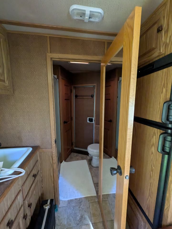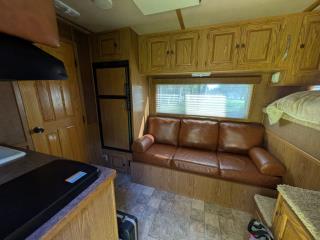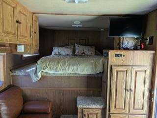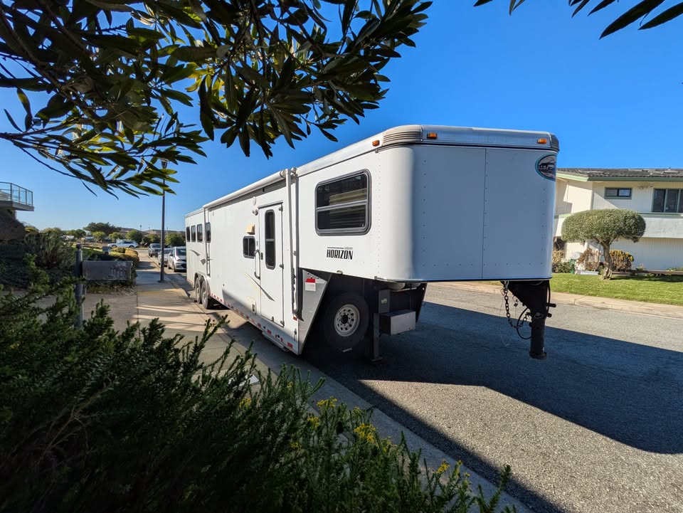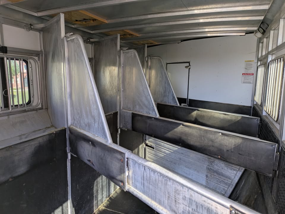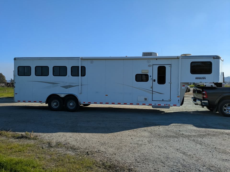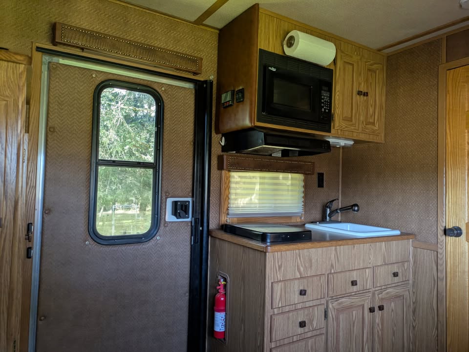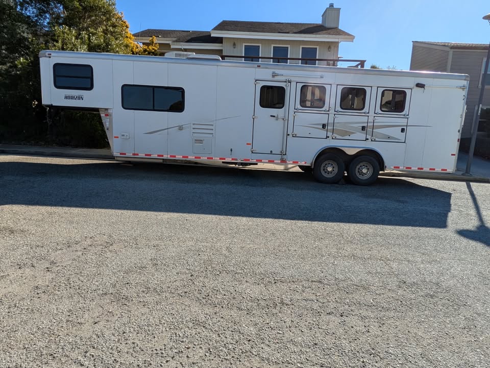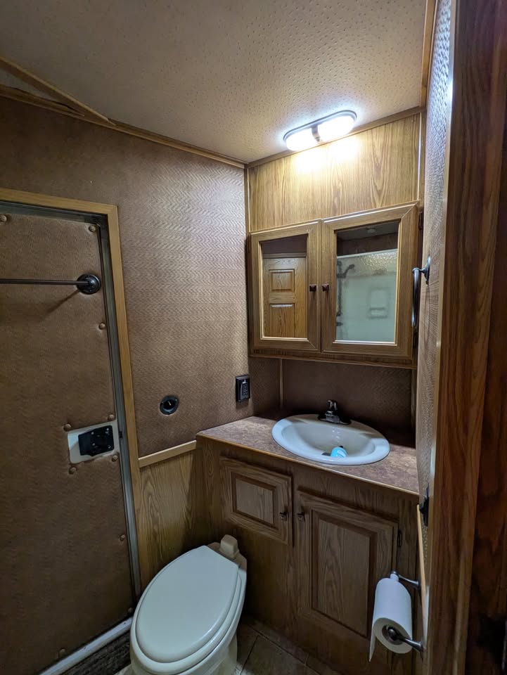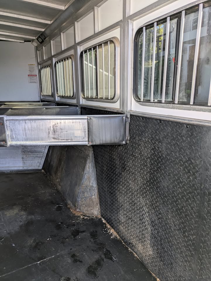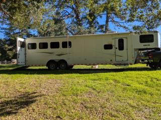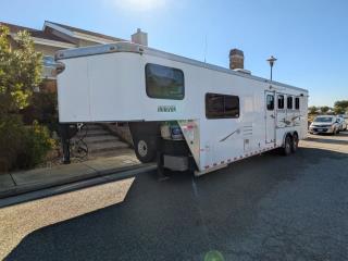 Additional (original) features: electric/hydraulic jack, propane heat, hot water and stove with 2 20-lb tanks, 6 cu ft fridge run propane or electric, microwave, AC, large bathroom, shower, sink, toilet, full height closet and full length mirror. The first horse bay has astud stall divider; foldable rear tack wall (supports full width loading);