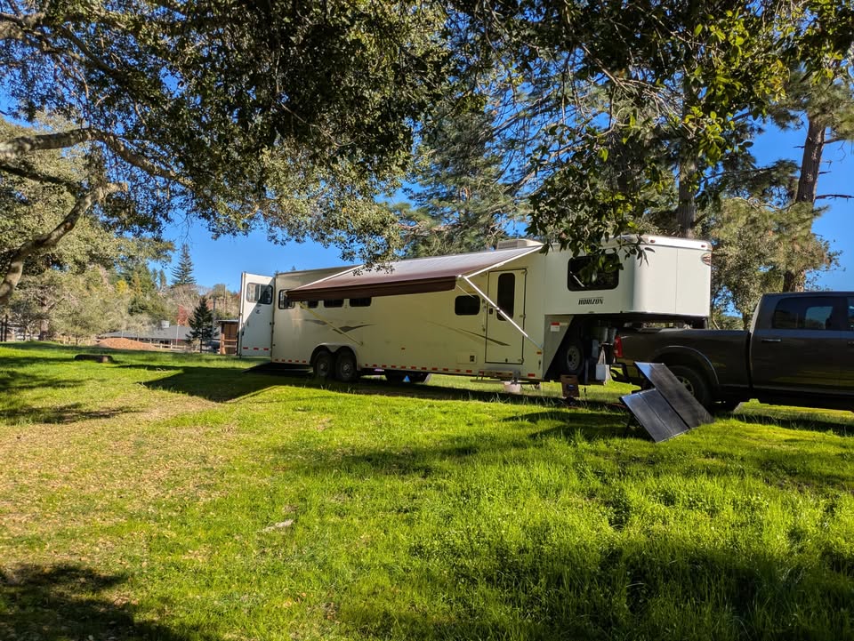 In 2022: brakes, hubs and (Timken) wheel bearings, 3 inch lift for ground clearance and level fit with newer trucks, extended ramp to accommodate 3 inch lift, awning, external speakers, 12v TV, LQ lights upgraded to LED, external LED lights under awning and at back ramp, 2 Coach batteries, solar kit.