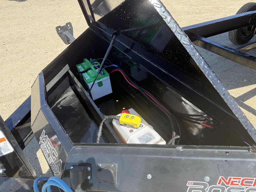 Bumper Pull2 - 7K Lippert Electric Brake Auto Adjust EZ Lube Spring AxlesST235/80R16 Tires (10 ply) w/Black Mod WheelsWeld on Spare Tire Mount2-5/16” Adjustable BP Coupler (17K)1 - Side Wind Spring Loaded Drop Leg Jack (12K)Mega Lockable Toolbox Houses Battery & Pump3 Way Door Gate - Spreader GateRamp Pockets w/6’ 4” Long Slide in 4” Channel Ramps14ga. Diamond Plate Steel Fenders28” Sides4 D-Rings Welded Inside Bed8” I-Beam FrameNeckboss 8” Engineered I-Beam Tongue3/8” Grade 70 Safety Chain w/Clevis Hook3” Channel 16” Spacing Crossmembers2 Button Hydraulic - Power Up/Power Down Pump1 - Interstate 27 Deep Cycle Battery110V Integrated Trickle ChargerManual Tarp KitAll-Weather Wiring Harness (7-Way RV)Powdercoat Black9 ga. Steel Bed