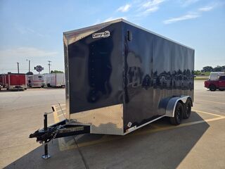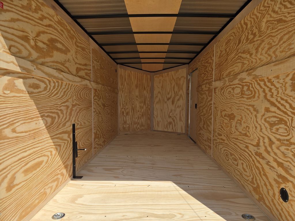 7’ x 16’ CGR CM + 6 in Interior Height 2 x 3,500 lb. EZ Lube 4 in Drop Axles 2 5/16 in Coupler Triple 2 in x 6 in Tongue .030 Aluminum Siding Side Post on 16 in Centers ATP Diamond Plate Fenders 6’ 6 in Interior Height Sloped Roof (Prevents Water from Sitting) 2K Jack 5 Hole Wheel ST 205 75 R 15 in Radials Dual Spring Assist Rear Ramp Door 36 in Side Door with Bar Lock and RV Latch Interior Spare Tire Mount ATP Front Stone Guard 3/4 in Treated Plywood Floors 3/8 in Plywood Walls Flow Through Vents Empty Weight: 2,490 lbs. GVWR: 7,000 lbs. Carrying Capacity: 4,510 lbs.