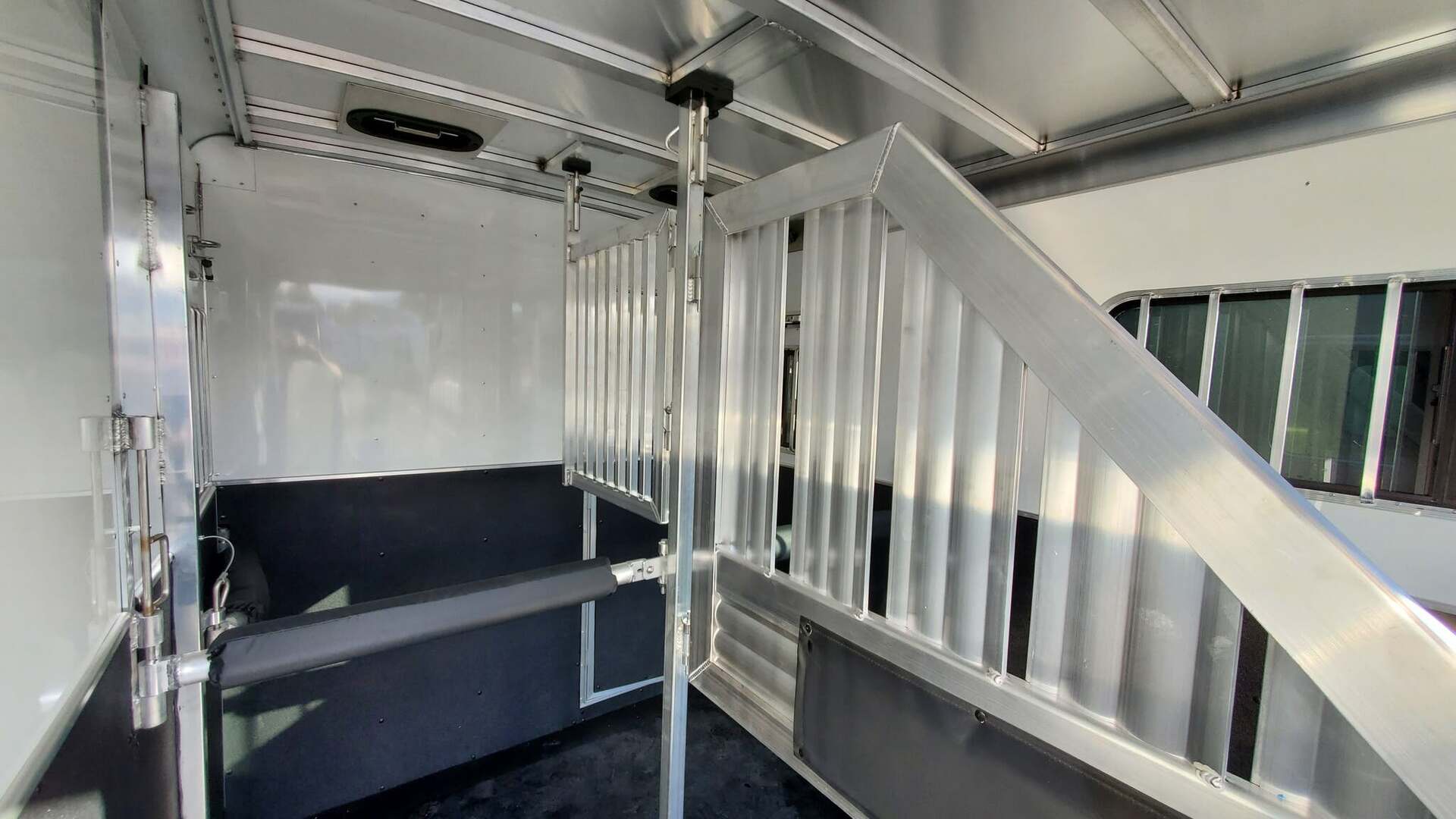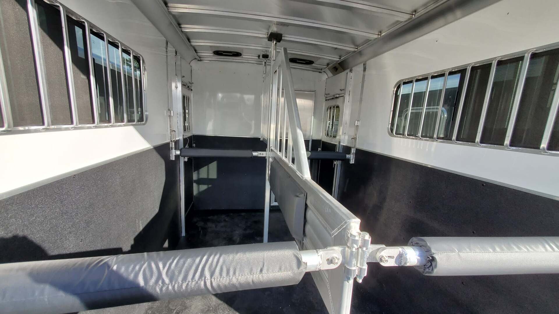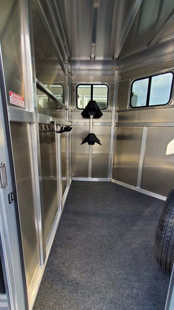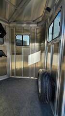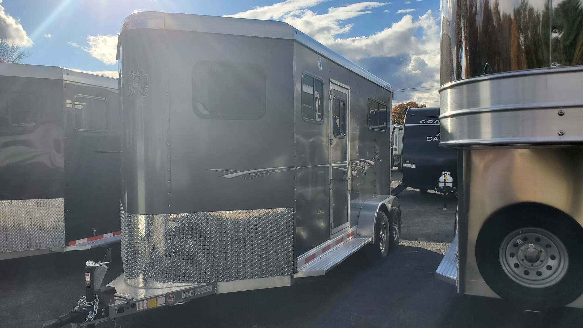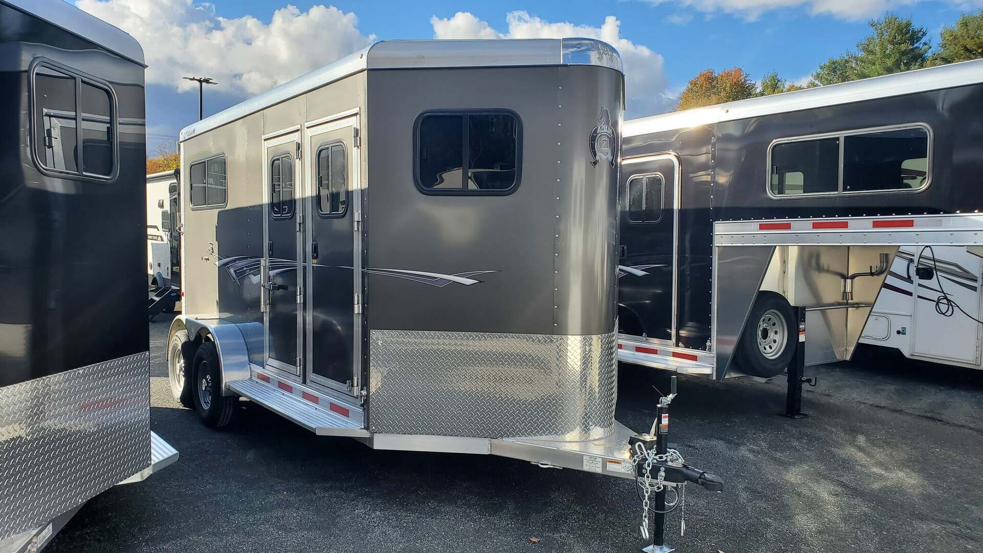 2026 Adam Jubilee 2-horse bumper-pull straight-load horse trailer. Adam’s top-tier bumper pull! Commercial duty through and through. All aluminum with aluminum flooring. Dexter Torsion Axles. Easy-lift rear ramp. Saddle Racks. Dressing room features deep v-nose design for maximum space. Optional windows in v-nose, and windows in rear doors over ramp. Dual escape doors. Walk-through door from dressing room to horse stalls. Charcoal exterior skins. Upgraded heavy duty doors. Call today for more information!