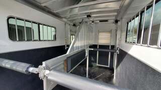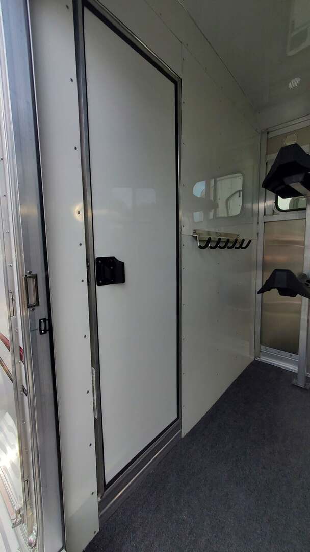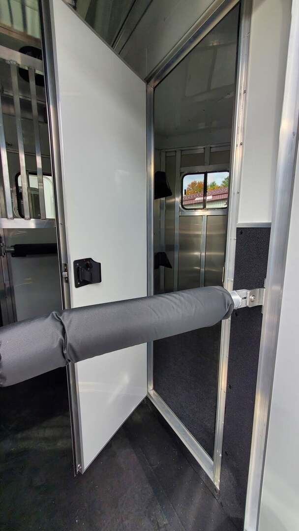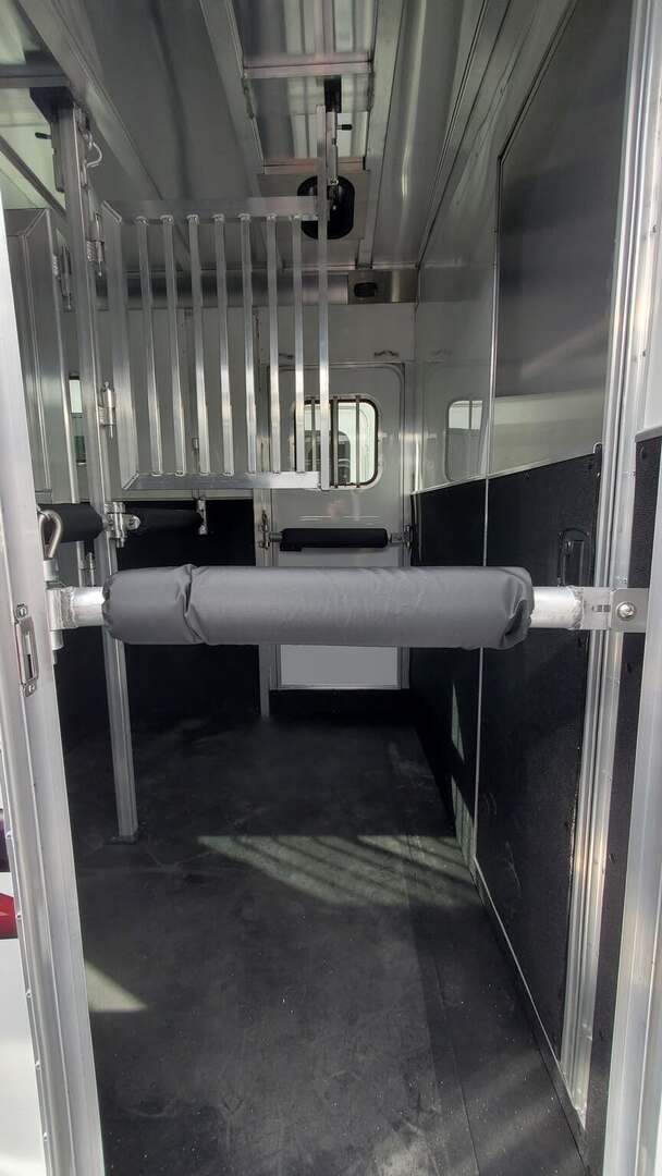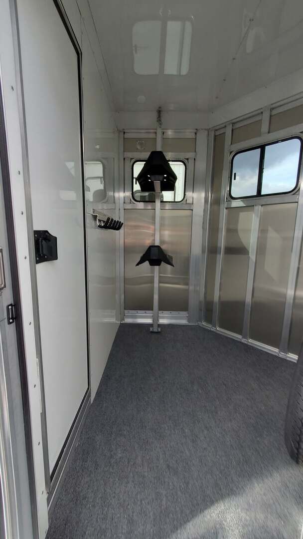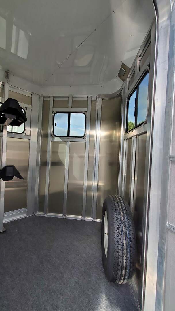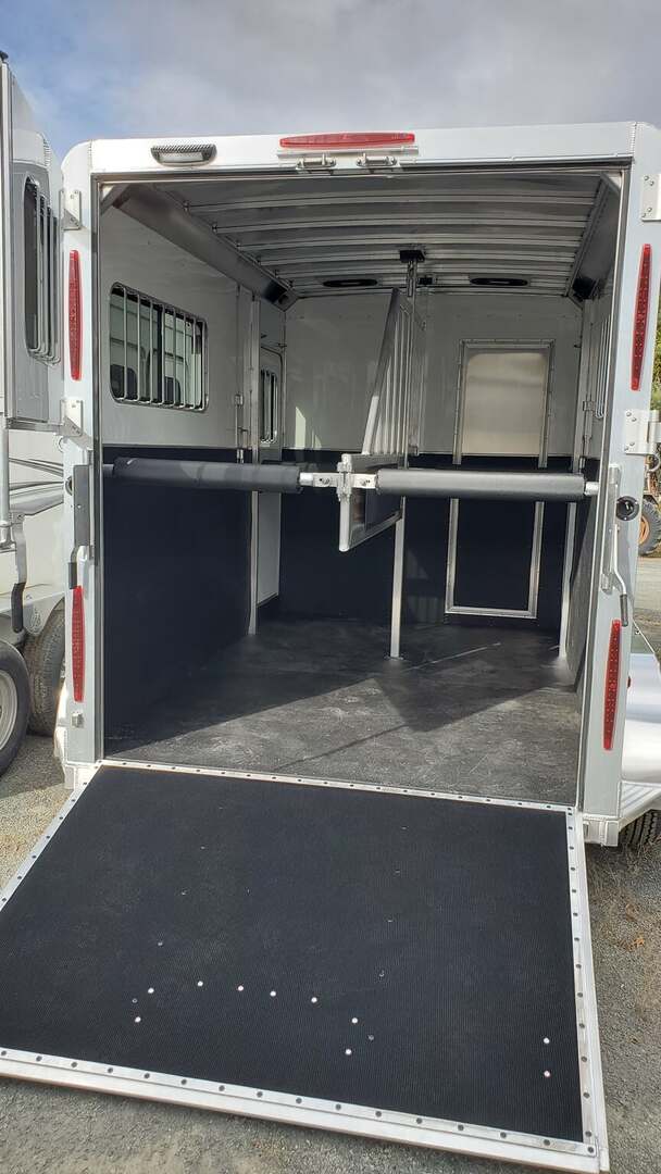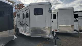 2026 Adam Jubilee 2-horse bumper-pull straight-load horse trailer. Adam’s top-tier bumper pull! Commercial duty through and through. All aluminum with aluminum flooring. Dexter Torsion Axles. Easy-lift rear ramp. Saddle Racks. Dressing room features deep v-nose design for maximum space. Optional windows in v-nose. Dual escape doors. Walk-through door from dressing room to horse stalls. White exterior skins. Call today for more information!