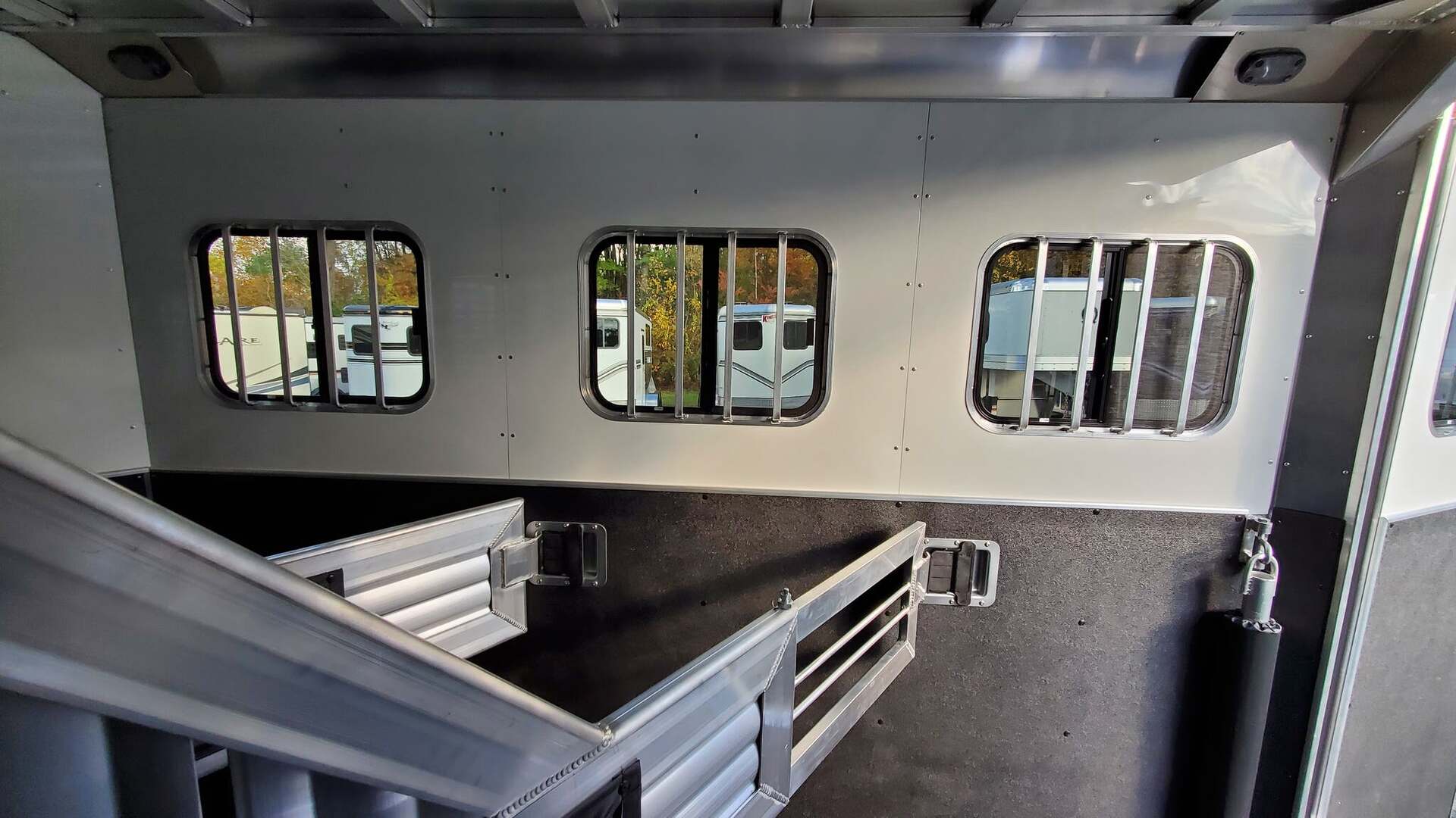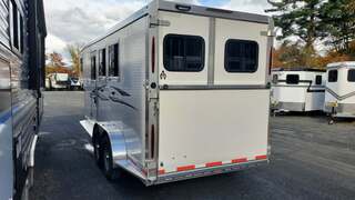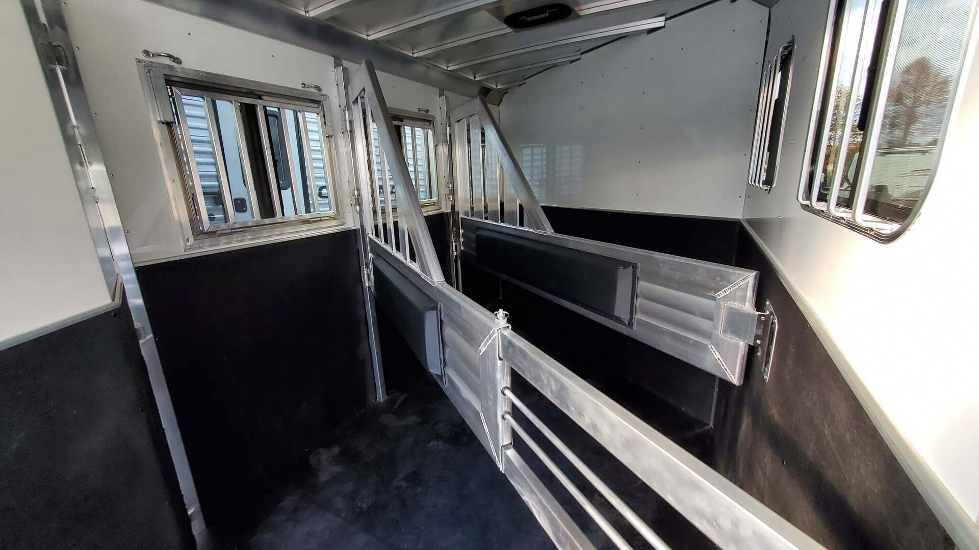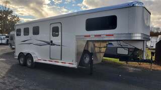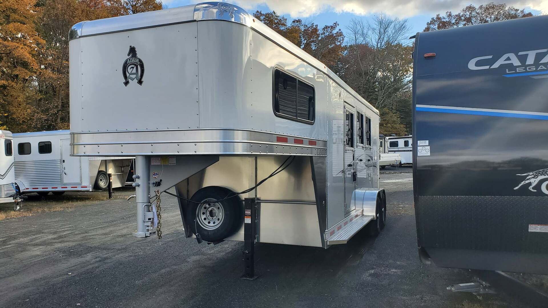 2026 Adam Excursion 3-horse slant-load gooseneck horse trailer. Commercial duty through and through. All aluminum with ultra durable aluminum flooring. Dexter Torsion Axles. Easy-lift rear ramp over rear barn doors. Saddle Racks. Front dressing room and rear collapsible tack room. Escape door. White exterior skins. Call today for more information!