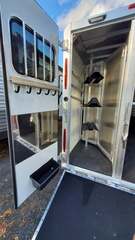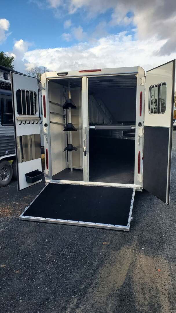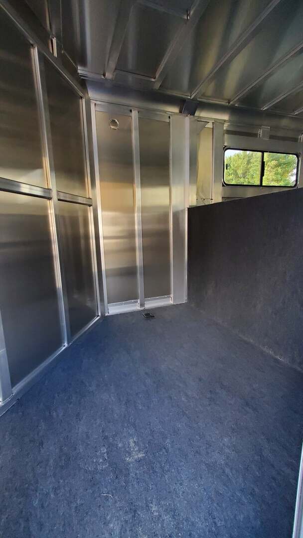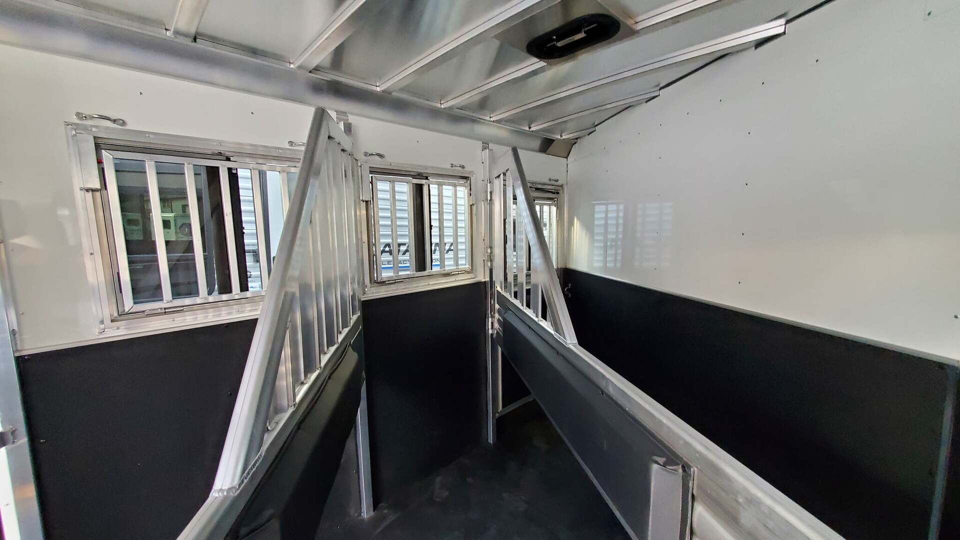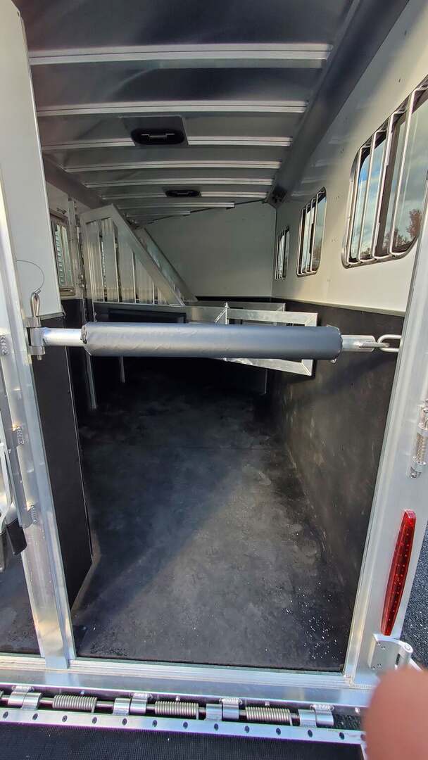 2026 Adam Excursion 3-horse slant-load gooseneck horse trailer. Commercial duty through and through. All aluminum with ultra durable aluminum flooring. Dexter Torsion Axles. Easy-lift rear ramp over rear barn doors. Saddle Racks. Front dressing room and rear collapsible tack room. Escape door. White exterior skins. Call today for more information!