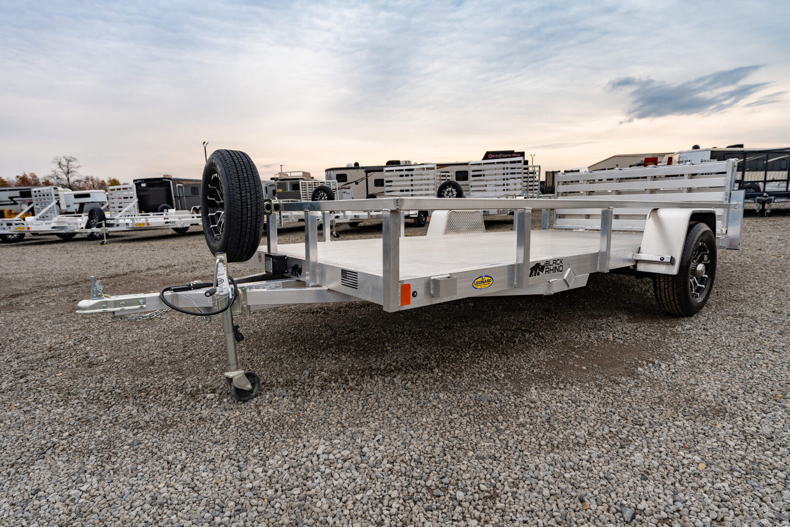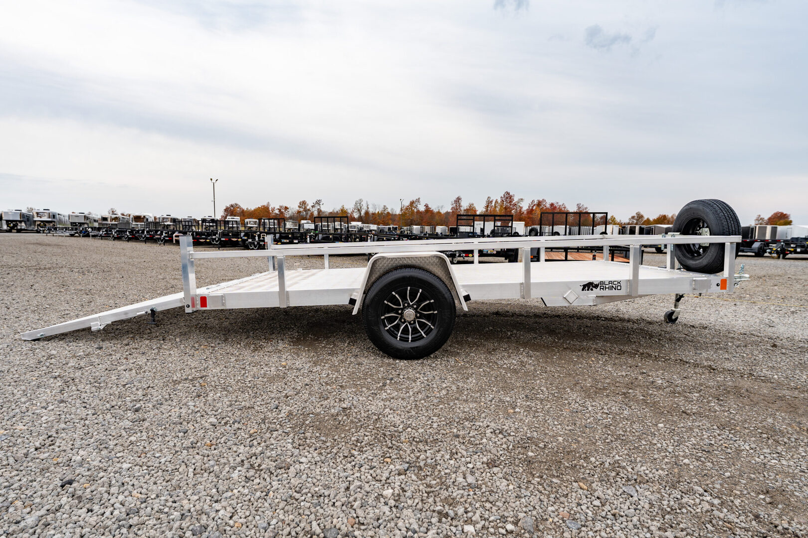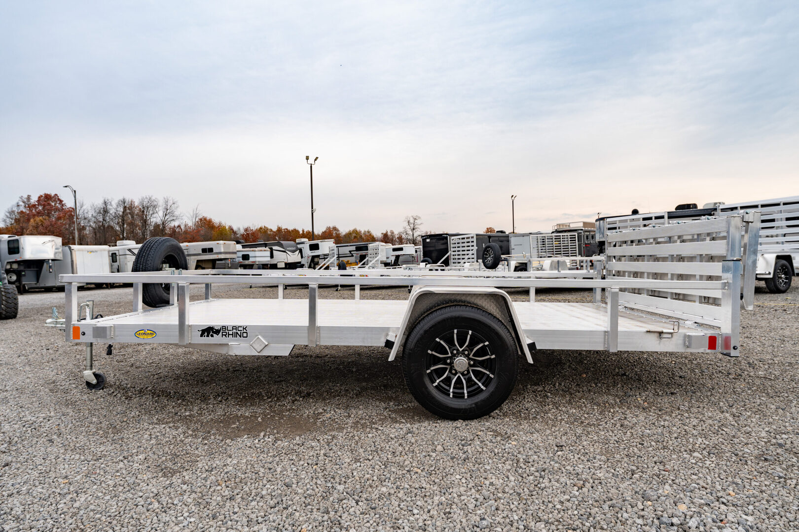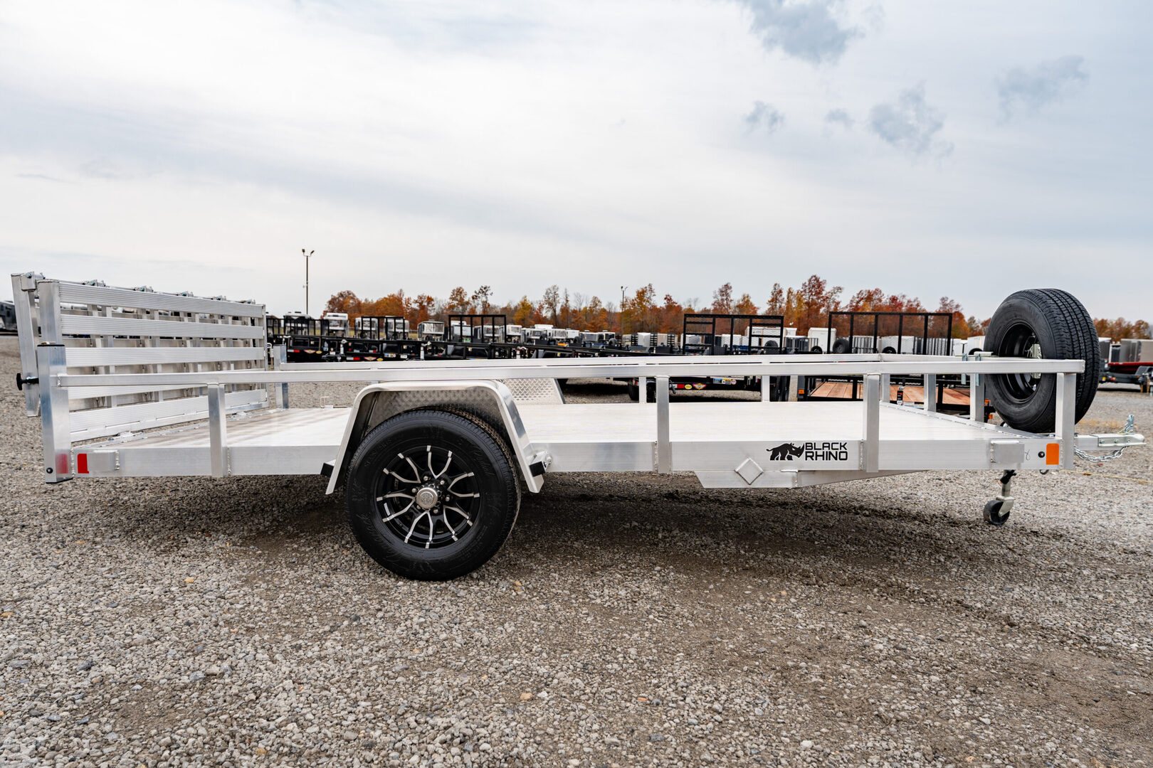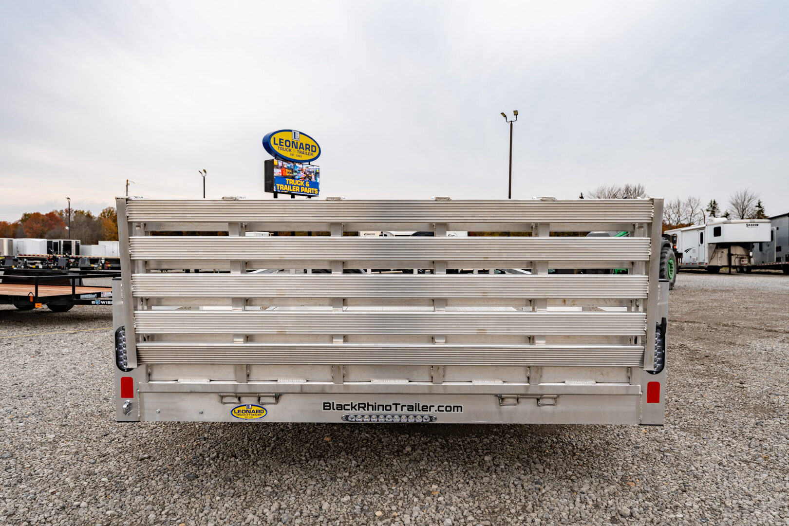 View Inventory: https://leonardtrailers.com/inventory/44947 Stock # 44947 Black Rhino LSS714A Utility Trailer The Black Rhino LT Series features a robust 8” side rail that provides multiple tie-down points to keep your cargo secure on every haul. Designed for efficiency, the heavy-duty rear gate ensures easy loading and unloading, with an optional split-gate configuration for added convenience. Built with an aggressive A-frame design and premium welding craftsmanship, the LSS714A delivers superior strength and durability. This trailer is the ideal choice for professionals, contractors, and business owners who demand reliability and performance to protect their investment. Specifications: Bed Size: 81” × 14’ Overall Length: 102” × 18’ Deck Height: 17” Side Height: 54” Axle Type: Torsion (Idler) Axle Rating (lbs): 5,000 Curb Weight (lbs): 825 Payload Capacity (lbs): 4175 GVWR (lbs): 5000 Wheels: 15” Aluminum Tires: 205/75R15   Every Black Rhino LT Model comes backed by a 3-Year Limited Warranty, ensuring lasting confidence and protection for your investment.   We offer outstanding financing options, accept trades, and can arrange nationwide NO HASSLE delivery! Inquire today for more information! (888) 333-6613 **We believe these specifications to be accurate. Any discrepancies are unintentional. Please verify information with a sales associate prior to purchase.** Stock Number:44947