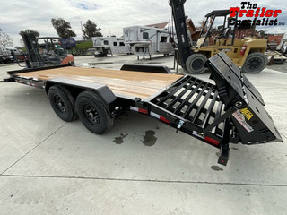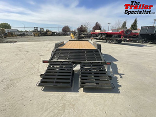 NEW 2025 Big Tex 14EH-20D3A-MR 7x20’ 14k GVW Equipment Trailer! *The 14EH Super Duty Tandem Axle Equipment Trailer from Big Tex has an 83-inch width, multiple length options, and a flush floor, providing versatility and exceptional value. 7,000-pound axles give the 14ETH added weight capacity for unmatched durability and strength.* 83” X 20’ heavy duty tandem axle equipment Empty Weight: 3,540 LBS GVW: 15,400 LBS Dovetail with Mega Ramps Standard Specifications: AXLE: (2) 7,000# EZ Lube w/Electric Brakes JACK: 12,000# Drop Leg Jack-Side Wind TIRE: ST235/80 R-16 Load Range E FLOOR: APEX Fortified Lumber FRAME: 8” I-Bean WHEEL: 16” x 6”; Black Mod 8 Bolt FINISH: Superior Quality Finish is Applied for a Highly Decorative and Protective Finish. LIGHTS: L.E.D. D.O.T. Stop, Tail, Turn & Clearance TONGUE: 8” Seamless I-Beam COUPLER: Adjustable 2-5/16” Demco EZ Latch FENDERS: 9” x 72” GA Diamond Plate Double Square w/Back (Removable) ELEC. PLUG: 7-Way RV HITCH TYPE: Bumper Pull SUSPENSION: Multi-Leaf Slipper Spring w/Equalizer CROSSMEMBERS: 3” Channel on 16” Centers SAFETY CHAINS: 3/8” Grd. 70 w/Safety Latch Hook (2 ea) FRONT STOP RAIL: 3/16” Fabricated Front Stop Rail THE 14EH ALSO COMES EQUIPPED WITH * Adjustable 2-5/16” Demco EZ Latch Coupler * Complete Break-A-Way System w/Charger * ZipTrademark Breakaway Cable * 12,000# Bolt-On Drop Leg Jack- Side Wind *Dual Jacks on Gooseneck Model * Mega-Sized Integrated Tongue Box with Lockable Lid (Bumper Pull Only) * Lockable Toolbox Between Risers on Goosneck Model * Seamless I-Beam Tongue Integration (Bumperpull Only) * Stylish Fabricated Front Stop Rail (Bumperpull Only) * Rubrail and Stake Pockets Along Sides * (6) D-Rings to Secure Equipment * Premium Brand 7,000#, Cambered Axles * Forward Self-Adjusting (FSA) Electric Brakes on All Hubs * Radial Tires * Double Broke Diamond Plate Fenders (Removable) * Grommet Mount Sealed Lighting * L.E.D. Lighting Package * Sealed Modular Wiring Harness * Convenient Side-Step to Access Deck * 40” Cleated Dovetail * While we always strive for complete accuracy, please confirm options with one of our sales reps.