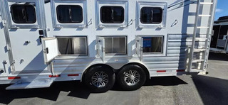 For Sale: Like New LQ 4H Charger C8413SR - Luxury Living Quarters Trailer If you’re searching for a top-tier living quarters trailer with all the bells and whistles, this is the one. Whether you’re heading out for a weekend getaway or a cross country adventure, this trailer is built to deliver comfort, convenience, and style. Key Features: Hydraulic Jack - Effortless hitching and unhitching. Full Solar Power System - Stay powered up anywhere, anytime. Extra Space - Roof rack and plenty of cabinet space for your trips. Premium Interior - Designed for comfort; you’ll forget you’re in a trailer. Entertainment Ready - Built in TV and premium sound system for indoor/outdoor enjoyment. Spacious Kitchen - Includes oven, stove top, microwave, and a large refrigerator. Climate Control - Equipped with AC and furnace to keep you comfortable year-round. Large Bathroom - Roomy and well-appointed for convenience. Slide-Out Section - Expands living space so everyone can relax. 4 Horse Capacity - Perfect for equestrians who travel in style. This trailer is like new, meticulously maintained, and ready for your next journey. Whether you’re a rodeo traveler, horse show competitor, or just love the open road, the Charger C8413SR offers the perfect blend of luxury and practicality.