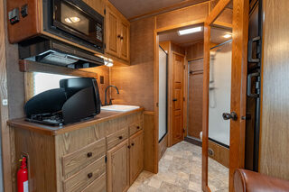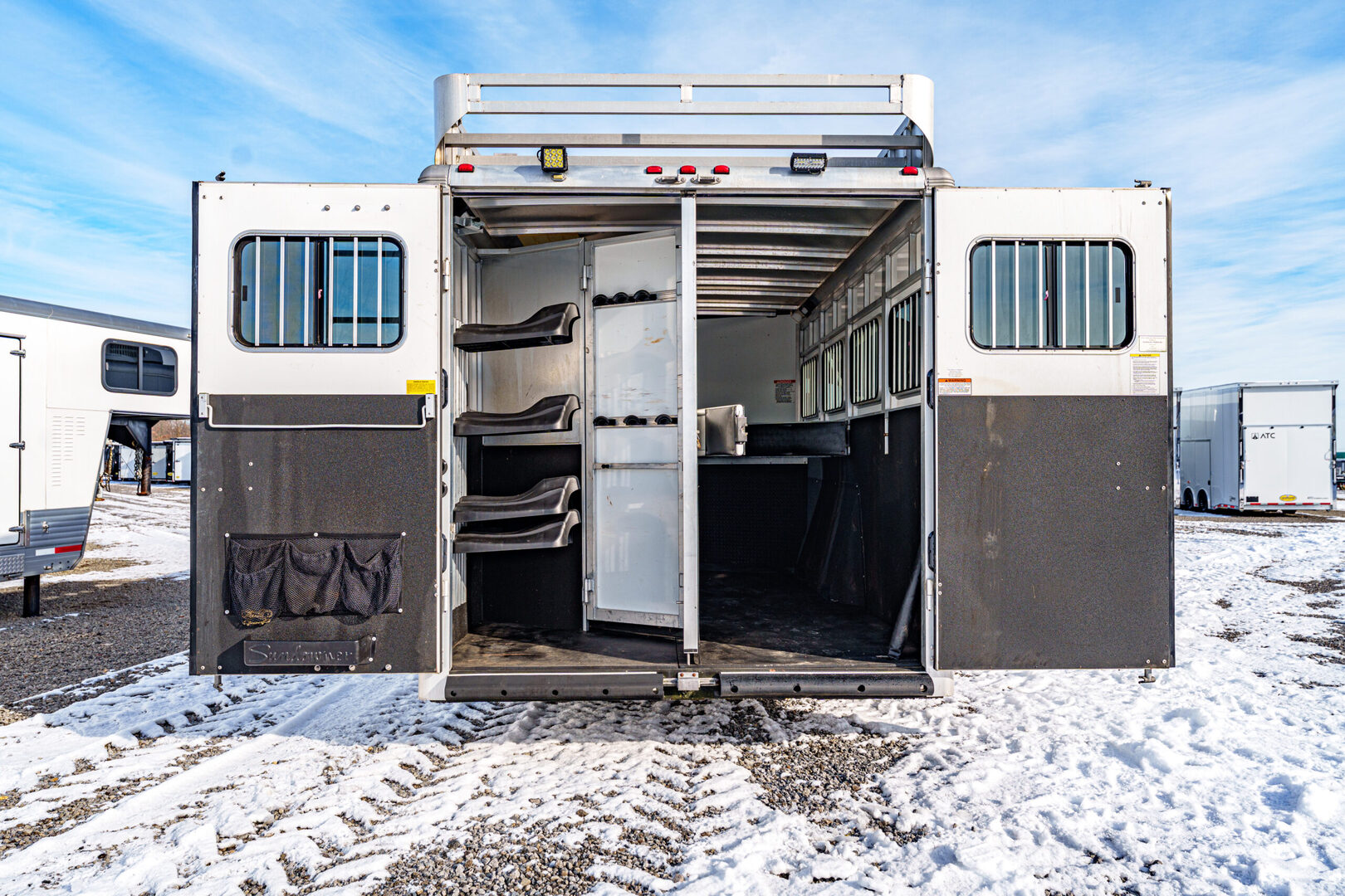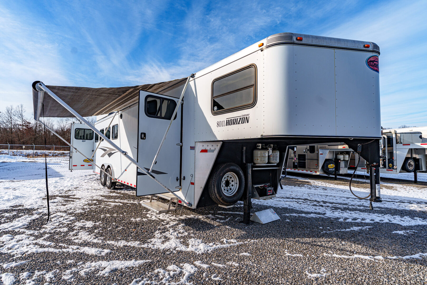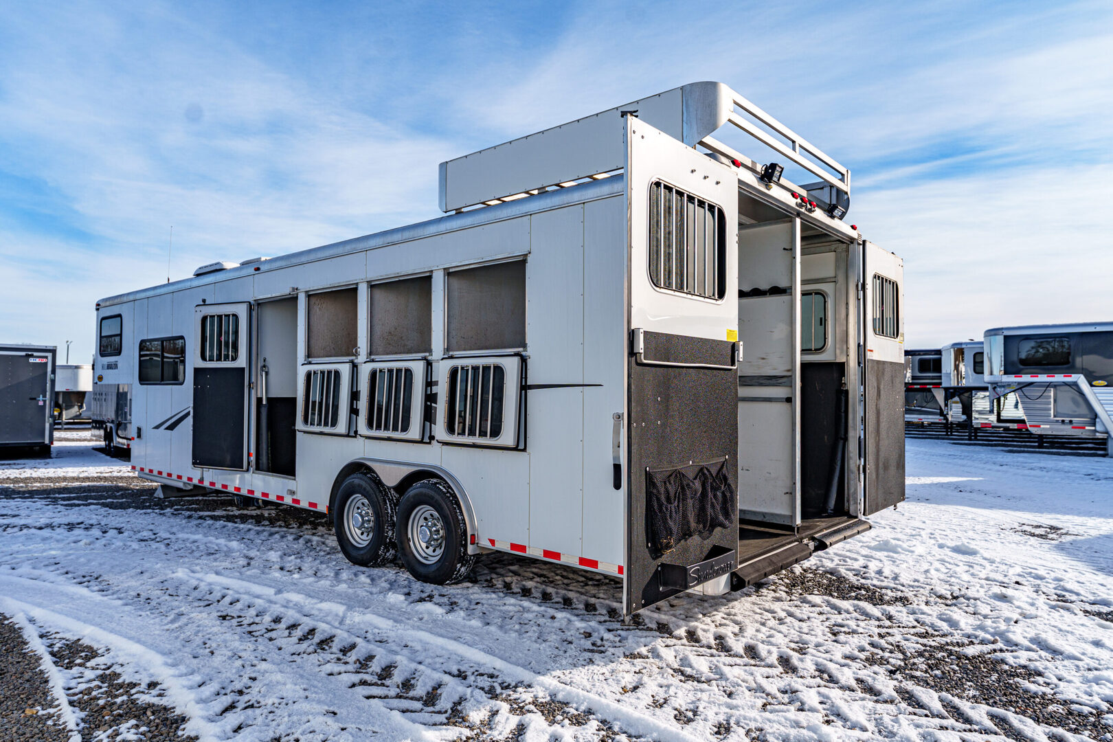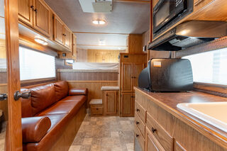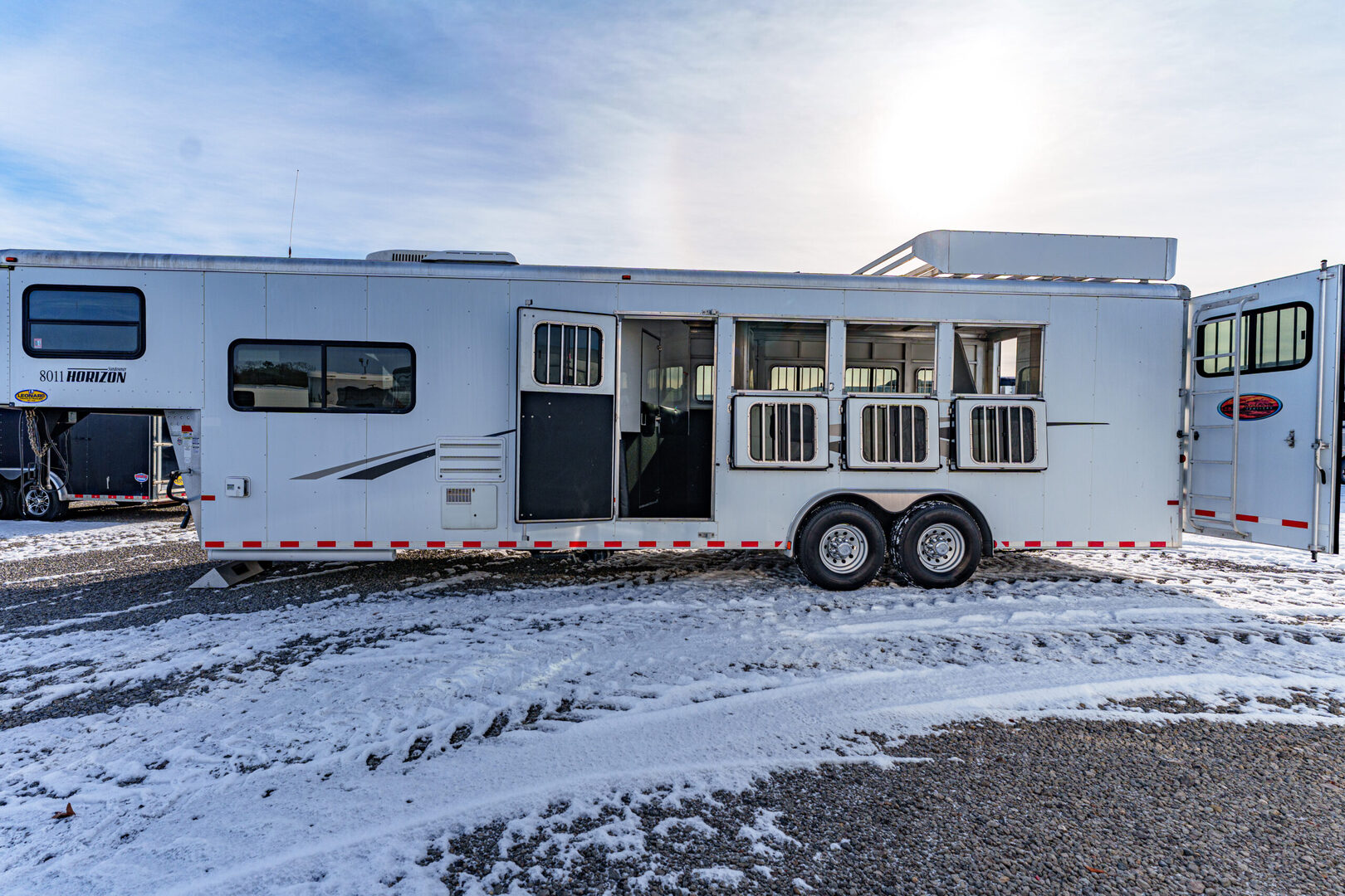 View Inventory: https://leonardtrailers.com/inventory/44959 Stock# 44959 Used 2009 SUNDOWNER 4 Horse GN - LQ Trailer    General Information Construction: Steel frame with aluminum skin Coupler Size: 2 5/16” Roof: Aluminum Primary Color: White Length: 29’ Width: 8’ Height: 9’ Horse Area Type: Slant Rubber Lining: Complete Escape Type: 1 Full Walk Out Tack Area Type: Rear Collapsible, Inside Dress Feed Doors Saddle Racks Outside Tack Doors Dressing RoomType: Slant Options: Lined/Insulated  Carpet  110V Package  Living Quarters Size: 10’ Options: Access to Horse Area  Air Conditioning Furnace / Heat Strip  Sofa / Dinette  Sink / Kitchen  Stove / Refrigerator  Microwave / Oven  Sink in Bath  Toilet / Shower  Slide Out  Specifications GVW: 15,210 lbs Axle Size: 7,000 lbs Tire Size: 16” # of Brakes: 4 Brakes: Electric Ride Type: Rubber Ride Jacks: Single Hydraulic We offer outstanding financing options, accept trades, and can arrange nationwide NO HASSLE delivery! Inquire today for more information! (888) 333-6613 **We believe these specifications to be accurate. Any discrepancies are unintentional. Please verify information with a sales associate prior to purchase.** Stock Number:44959