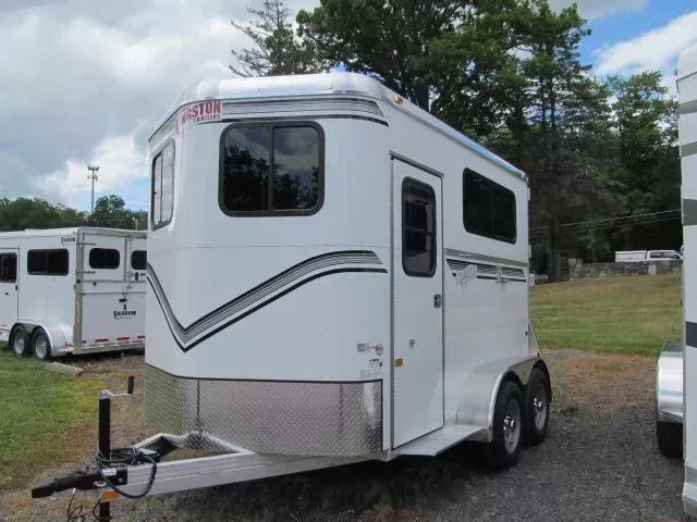 Trailers in stock: Horse Trailers, Stock Trailers, Equipment Trailers, Utility Trailers, Cargo Trailers, Dump Trailers, Car Trailers, Concession Trailers, Motorcycle Trailers, and Snowmobile Trailers.