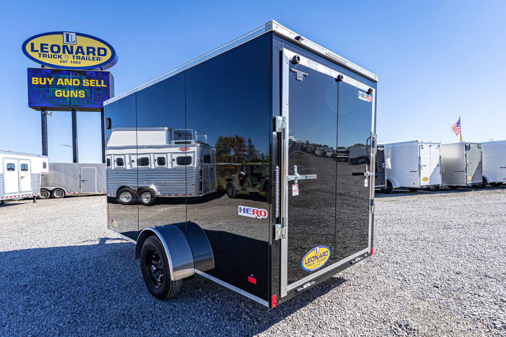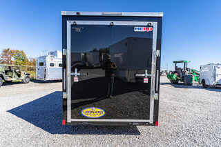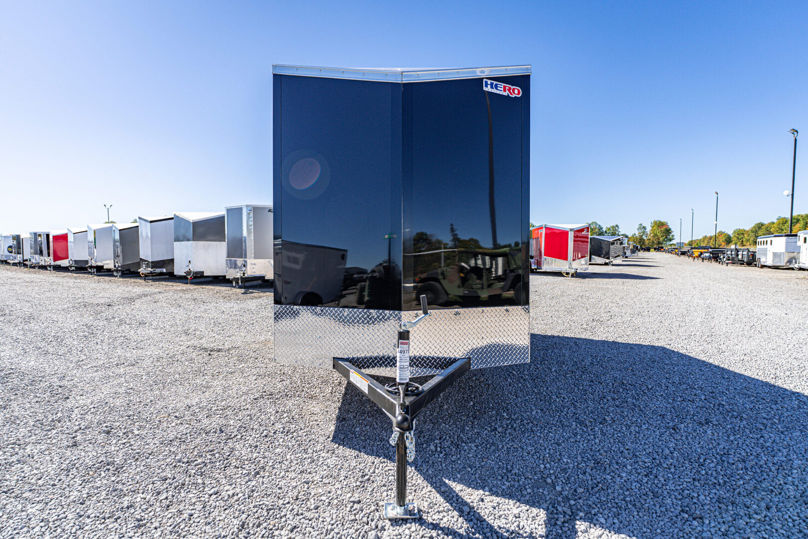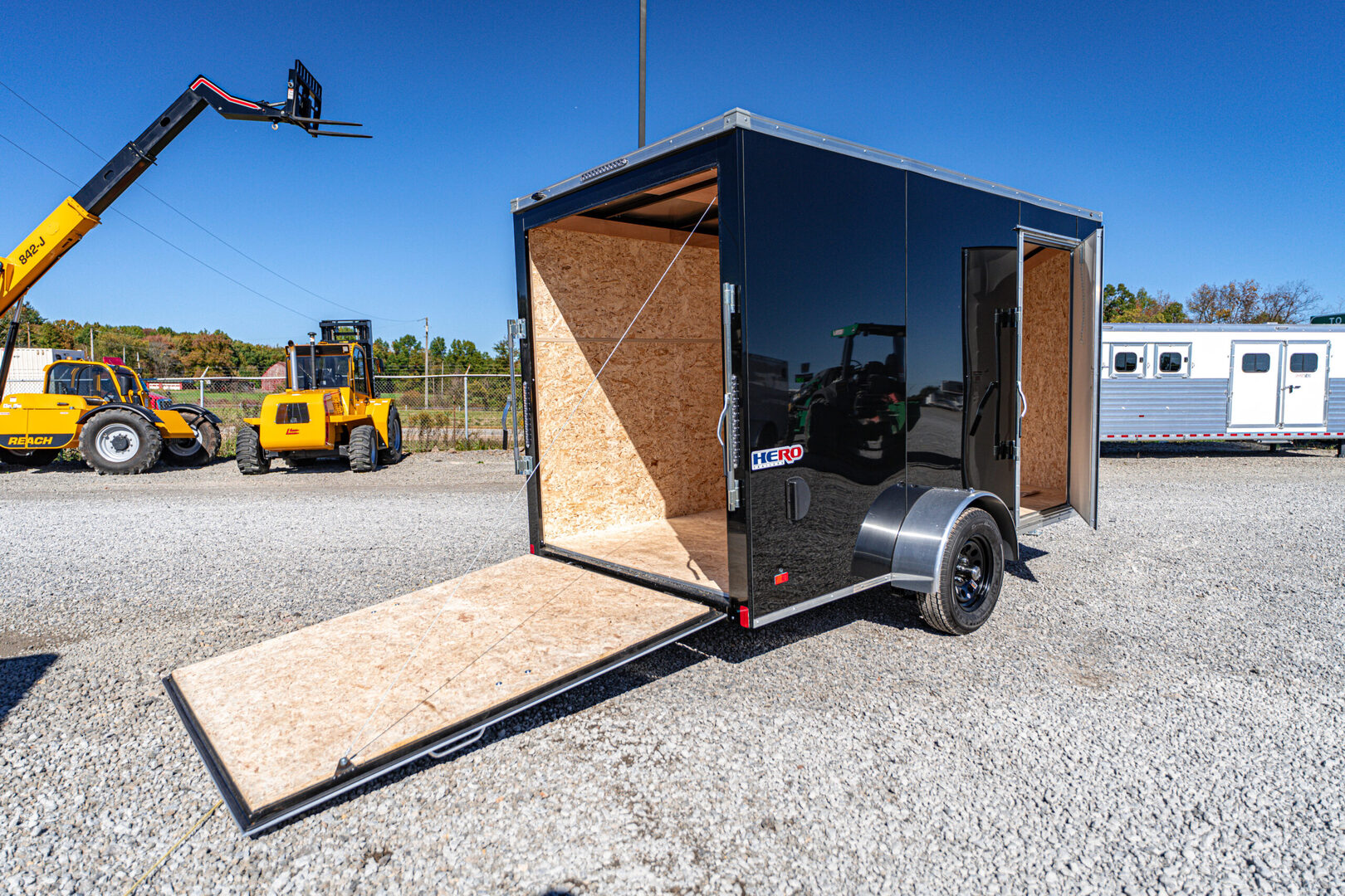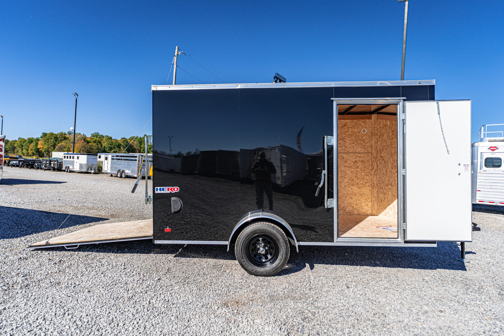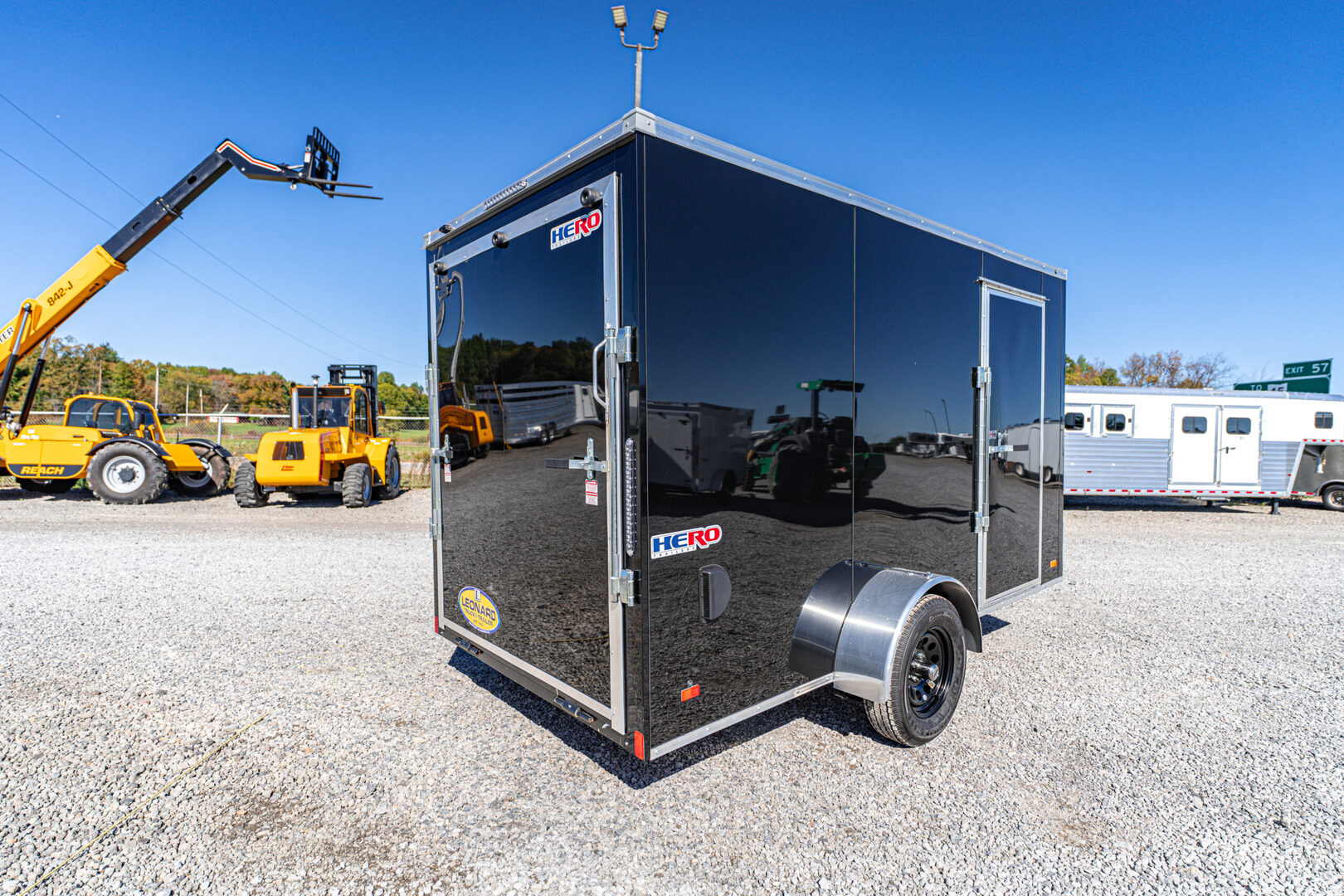 Stock# 44975 New 2026 Bravo HR612SA Enclosed Cargo Trailer  HERO TRAILERS deliver first class towing at an affordable price. Every Hero Trailer is designed and constructed to give you years of safe, secure and hassle-free towing. Quality features such as .030 aluminum exterior skin over tube wall posts and Dexter EZ ride suspension make for easy, reliable towing. HERO TRAILERS are built better, tow better and will be worth more at trade in time. Model: HR612SA Warranty: 3yr-Limited Hero Enclosed Trailer (Model HR612SA) Axle & Frame 2990# single drop spring axle 3” tube frame Cross members @ 24” O.C. 78-3/4” tube wall posts @ 24” O.C. Tube roof members @ 24” O.C. Interior height: 6’6” Coupler, Jack & Wheels 2” coupler – 5k Painted tongue jack w/ sand foot ST205/75R15/LRC 15” radial tires Black mod wheels Roof Aluminum roof Lighting LED strip tail lights – clear lens Bullet style LED clearance lights Standard ID light bar at rear Walls & Flooring 3/8” engineered sidewalls 3/4” engineered flooring Doors Light-duty ramp door (no flap) 32” x 70” curbside side door w/ barlock – 16” back No flushlock Interior (1) dome light centered @ 6’ back (1) 12V wall switch – at curbside door Vents (1) pair ABS flow-thru sidewall vents Front R/S high, rear C/S low Front Protection 16” stoneguard Exterior