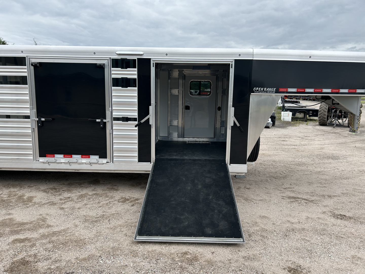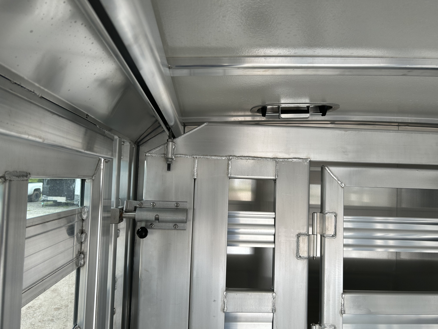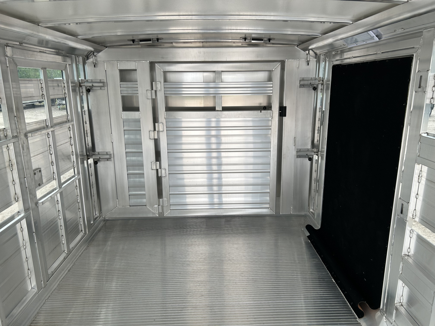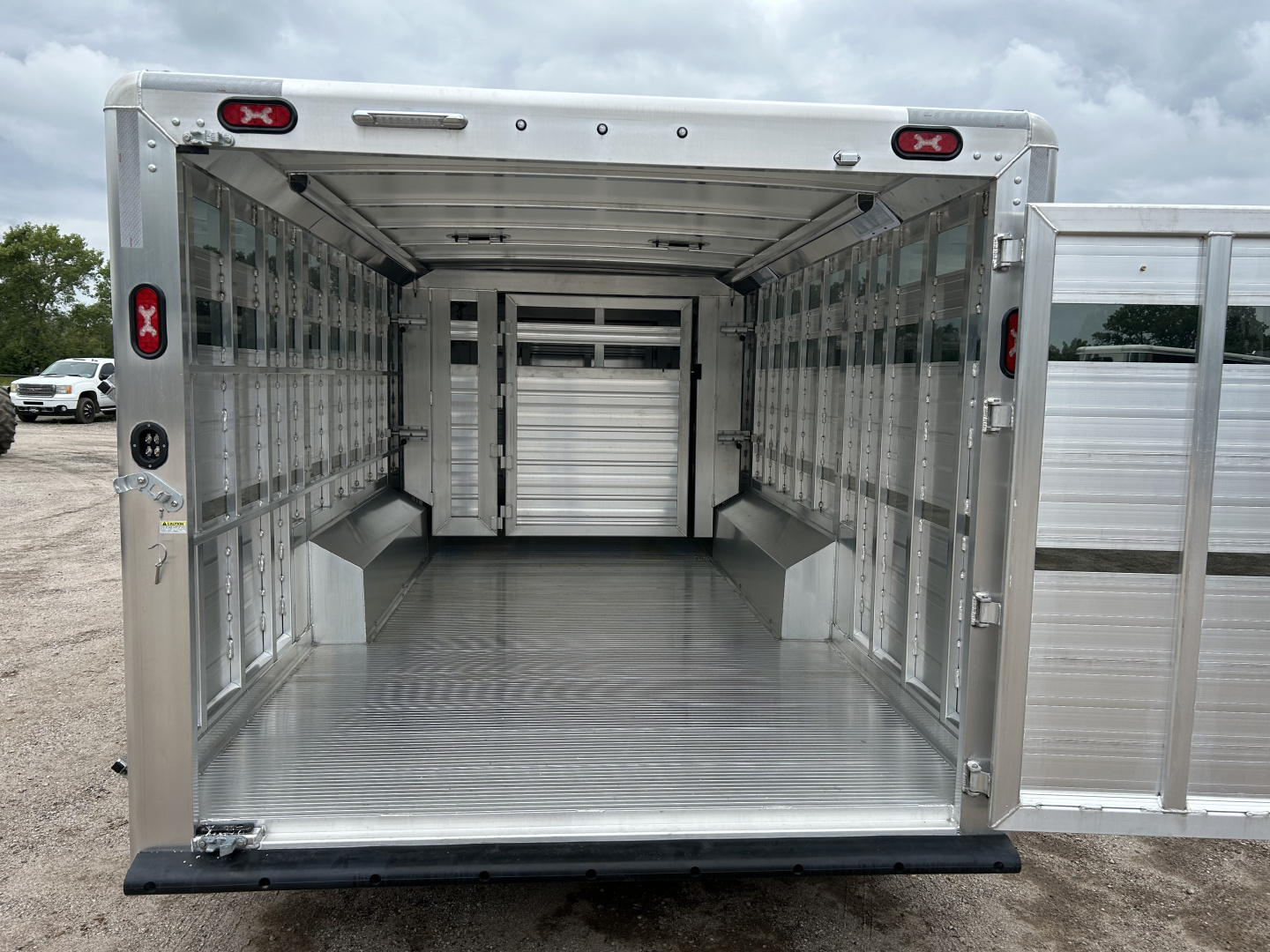 2026 Cimarron Lonestar Stock Combo 8’X 28’ GVWR 16K 2- 8K Torsion Axles Electric Brakes Cooper 245/70R17.5 J Range Tires 8 Hole Aluminum Black Spoke 17.5” Wheels Polished Stainless Steel Nose Sheet Mill Finished Side Extrusions Slat Sides With 3 Air Gaps w/Plexiglass Inserts Insulated Roof Panel EQ Hydraulic Jack 6’ Tack Room With 32” LH Side Door And 48” RH Side Ramp Rubber Mat In Tack Room Floor 22’ Stock Area With 2 Traveling Gates 48” RH Side Ramp In Stock Area Full Swing Rear Gate With 36” Slider Interior Tie Rail 28” & 48” On LH Side Exterior Tie Rail LH Side
