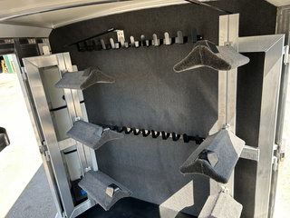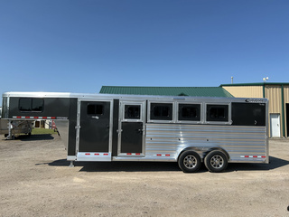 2026 CIMARRON NORSTAR 4 HORSE SLANT STALL 7000LB DEXTER TORFLEX AXLES 8 BOLT HUBS ELECTRIC BRAKES GOODYEAR ST 235/80 R16’ LR-E FULL LENGTH RUNNING BOARDS INSULATED ROOF SINGLE ELECTRIC/HYDRAULIC JACK WITH 12 VOLT BATTERY AND COMPARTMENT LED LIGHTS FULL HEIGHT AND WIDTH PARTITION WALL DUAL REAR DOORS 8 TIE RINGS INTERIOR/EXTERIOR 32”ACCESS DOOR W/ FEED DOOR & SBG 4 VENTS 2 SWING OUT ADJUSTABLE SADDLE RACKS ON GAS SHOCKS, 3 PADS EACH 2- 4 POLE SWING OUT GAS SHOCK BLANKET POLES 18” WIDE SHELF W/ 2” LIP 25 GAL. WATER TANK W/STAND/ HOSE 2 ROWS BRIDLE HOOKS IN FRONT TACK REAR STALL IS 1 FT LONGER THAN STANDARD, ALLOWING DIVIDER TO LAY FLAT