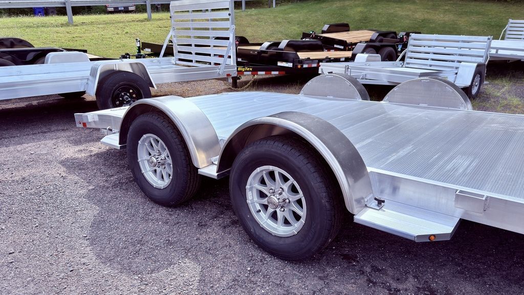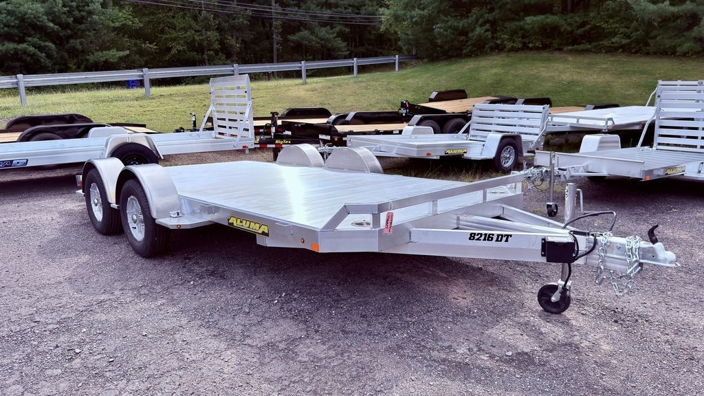 Connecticut Trailers features the following options for this Aluma Trailer: • Tandem Axle • Electric Brakes • Ramp Front Rail • Dove Tail • Std 5K RTD • 14” Aluminum Wheels 2026 Aluma 8200 Series 8216TA DT