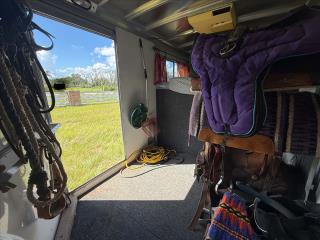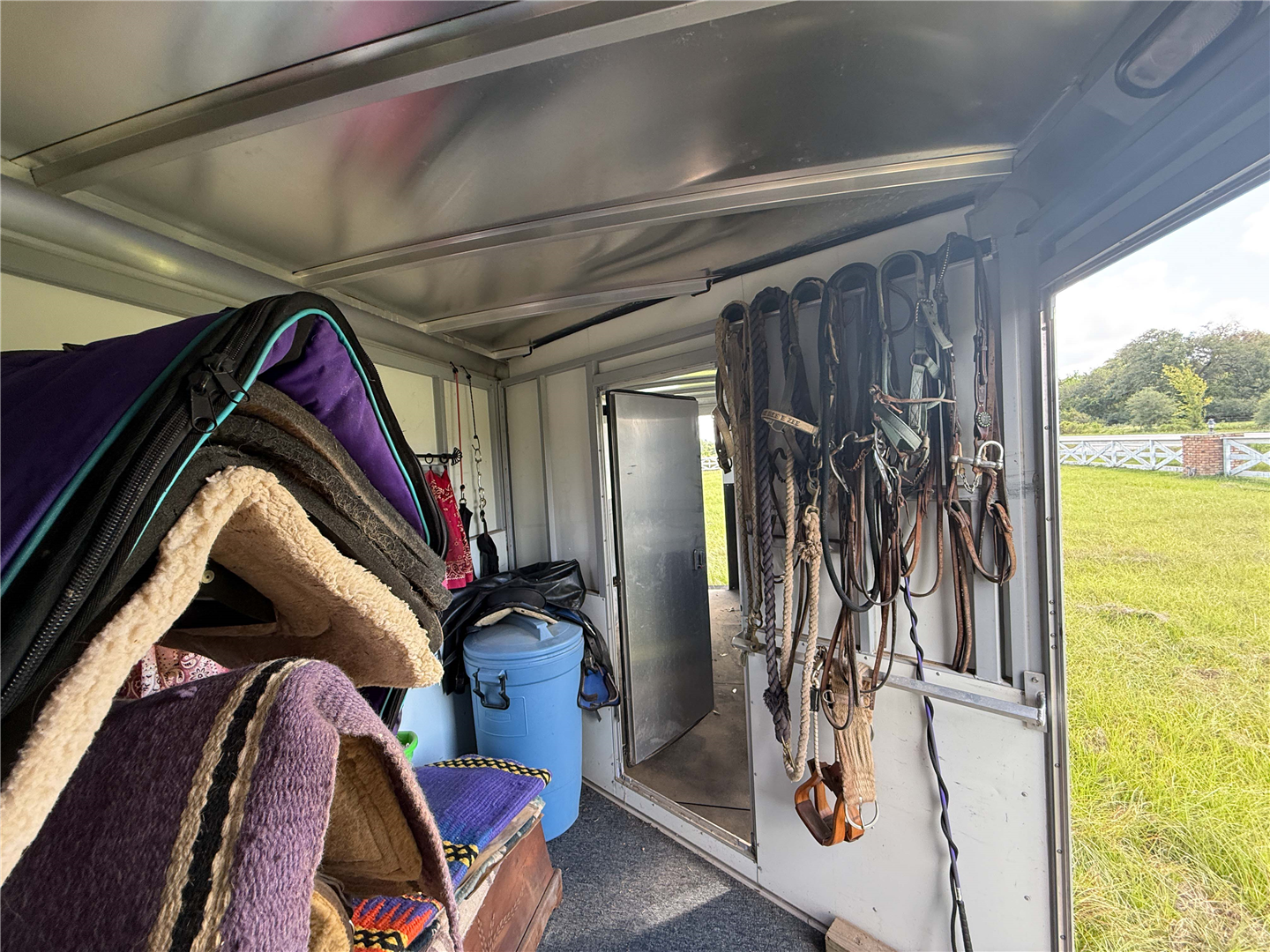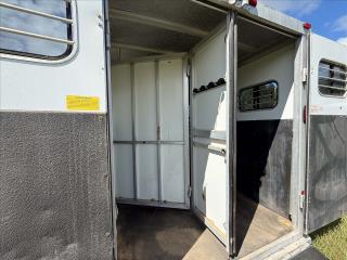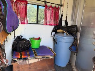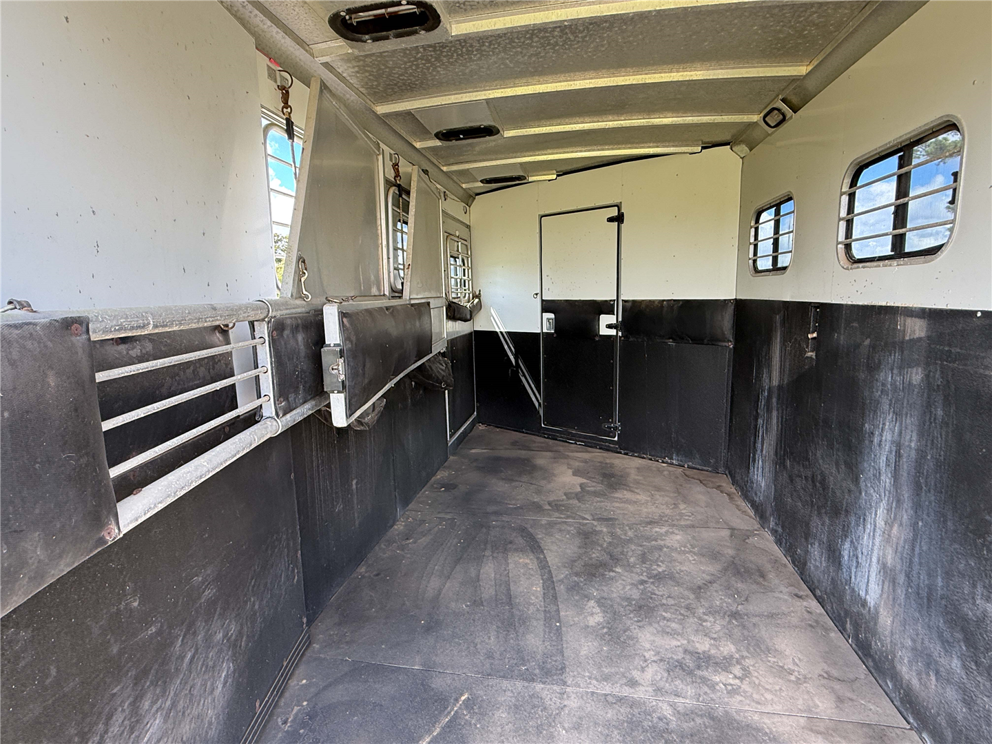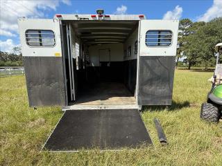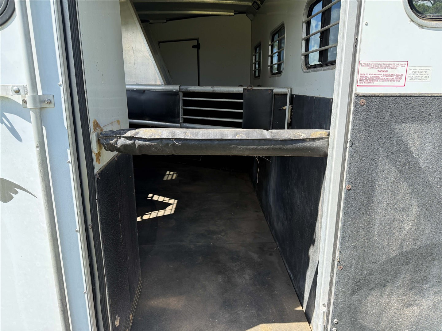 1999 Sundowner Valuelite - original owner. Added a hydraulic jack, extra large dressing room with a/c, 3.5 ft added to dressing room upgrade, loading light, dropdown face guards, drop down feed door in escape, walk through door, stainless nose wrap, 19x53 window, loading ramp is very easy to lift, empty weight #5000, electric brakes. Aluminum steel frame. Back tack and 3 saddles rack. Dressing room has space for 3 saddles rack.