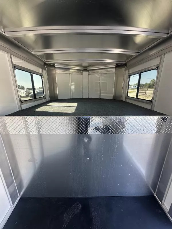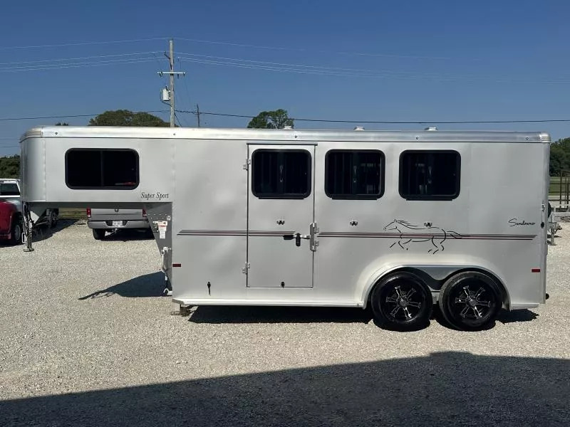 NEW ALL ALUMINUM 2025 Sundowner 3 Horse Slant Load Gooseneck Save big with this demo trailer! Never titled. 16’3”L x 7’T Dressing room- camper style entry door with sliding window, three tier swing out and removable saddle rack, adjustable bridle hooks, turf in nose, 2 sliding windows in nose, LED light. Horse area - composite wall kick board 48”, rubber floor matts, padded dividers, LED interior lights, 3 roof vents, 1st stall escape door, drop down windows with drop down face guards on head, hip has stock side with 2 air flow vents and removable plexiglass, 50/50 rear doors with sliding windows, 2 air spaces on hip side with removeable plexiglass. Other features - Aluminum alloy rims, 235/80R16 tires, matching spare tire, center leg landing gear, rear load lights, exterior tie rings, rear rubber bumper. Trailer comes with full new factory warranty. Financing available with rates as low as 6.49% WAC - Nationwide delivery Call our sales department at 940-365-9919 After hours calls/texts 612-381-6782