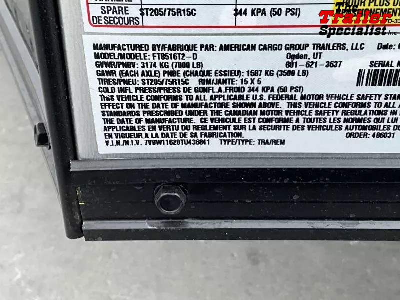 NEW 2026 Wells Cargo FT8516T2-D FastTrac 8.5x16 7K GVW Tandem Axle Enclosed Cargo Trailer The Ultimate Value in Light-Duty Hauling! Looking for a reliable enclosed cargo trailer that delivers on both versatility and affordability? Look no further than the 2025 Wells Cargo FastTrac 8.5x16. This 7,000 GVW tandem axle trailer is designed for recreational haulers and light-duty needs, offering exceptional value without compromising on quality or safety. With its sleek bull nose profile, rugged steel frame, and platform-lowering drop axles, the FastTrac stands out from the competition. You’ll appreciate the durability of the 3/4” PlexCore high-performance interior flooring and the protection of the 16” Starbright stone guard. Key Features & Upgrades: * Spacious Interior: A comfortable 7’ 6” inside height and 24” beavertail for easier loading. * Phantom Trim Package: Ramp Door, ATP Fenders * Enhanced Durability: 3/8” PlexCore interior sidewall liner and .030 refinished aluminum exterior. * Secure Cargo: 5,000 lb. floor-mounted D-rings and (4) 500 lb. wall tie-downs keep your load secure. * Convenience: Rear Ramp Door with Spring Assist and a 16” PlexCore Ramp Extension. * Built to Last: Entire Chassis Undercoated, E-Z LubeRegistered Hubs, 1-Piece Aluminum Roof, and Electric Brakes with Breakaway Kit. Standard Features Include: 12v LED Exterior Lighting, 32” Side Entry Door with Bar Lock, Flow-Thru Sidewall Vents, 15” Radial Tires on Silver Spoke Wheels, and a 1-Year Limited Warranty. Get more for your money with the Wells Cargo FastTrac!