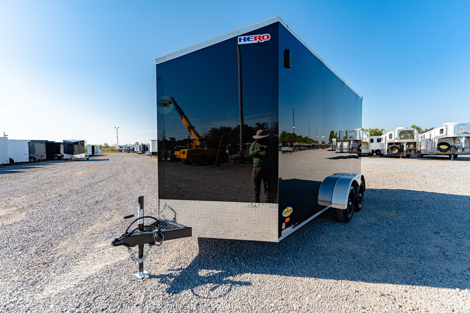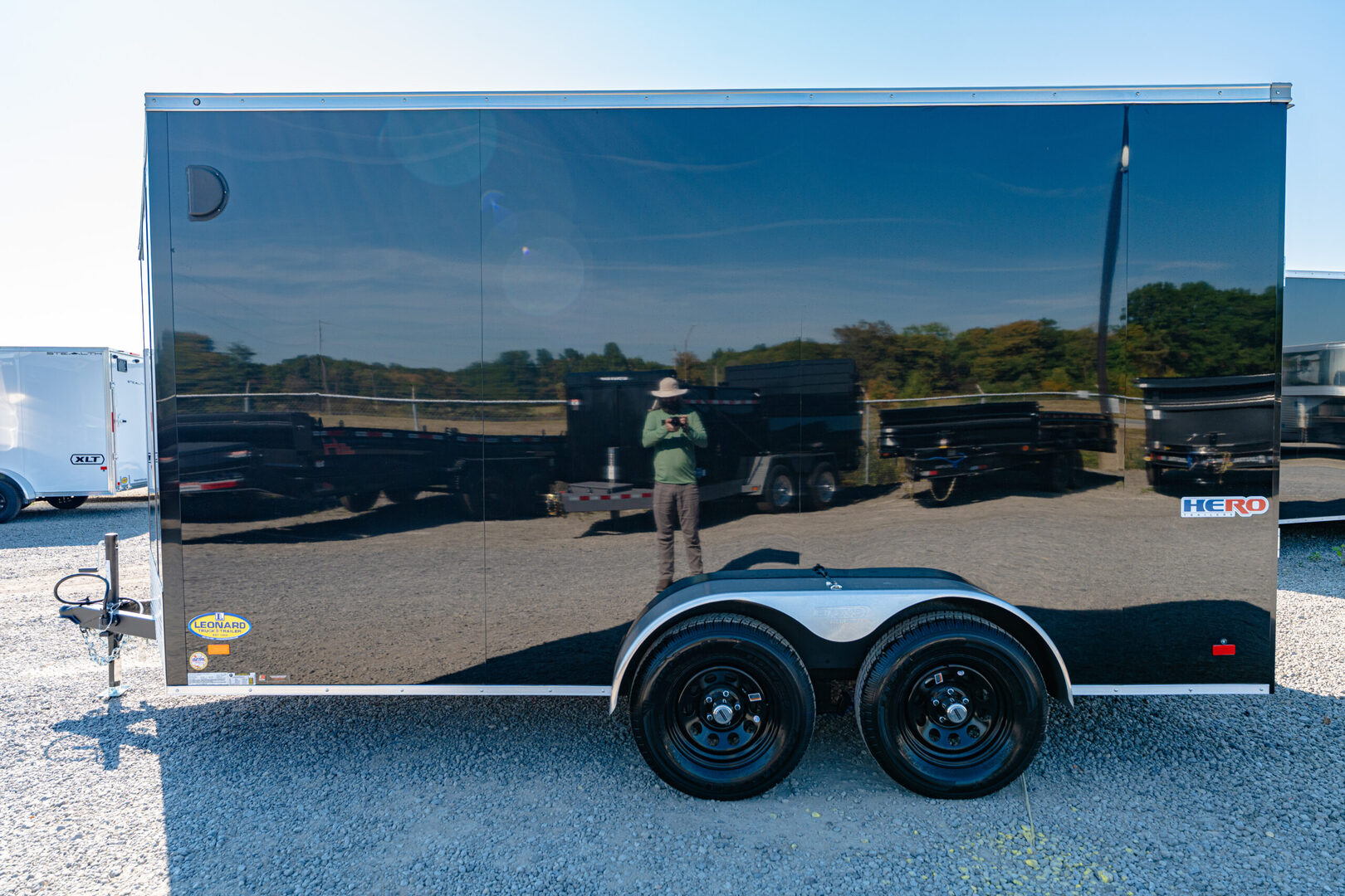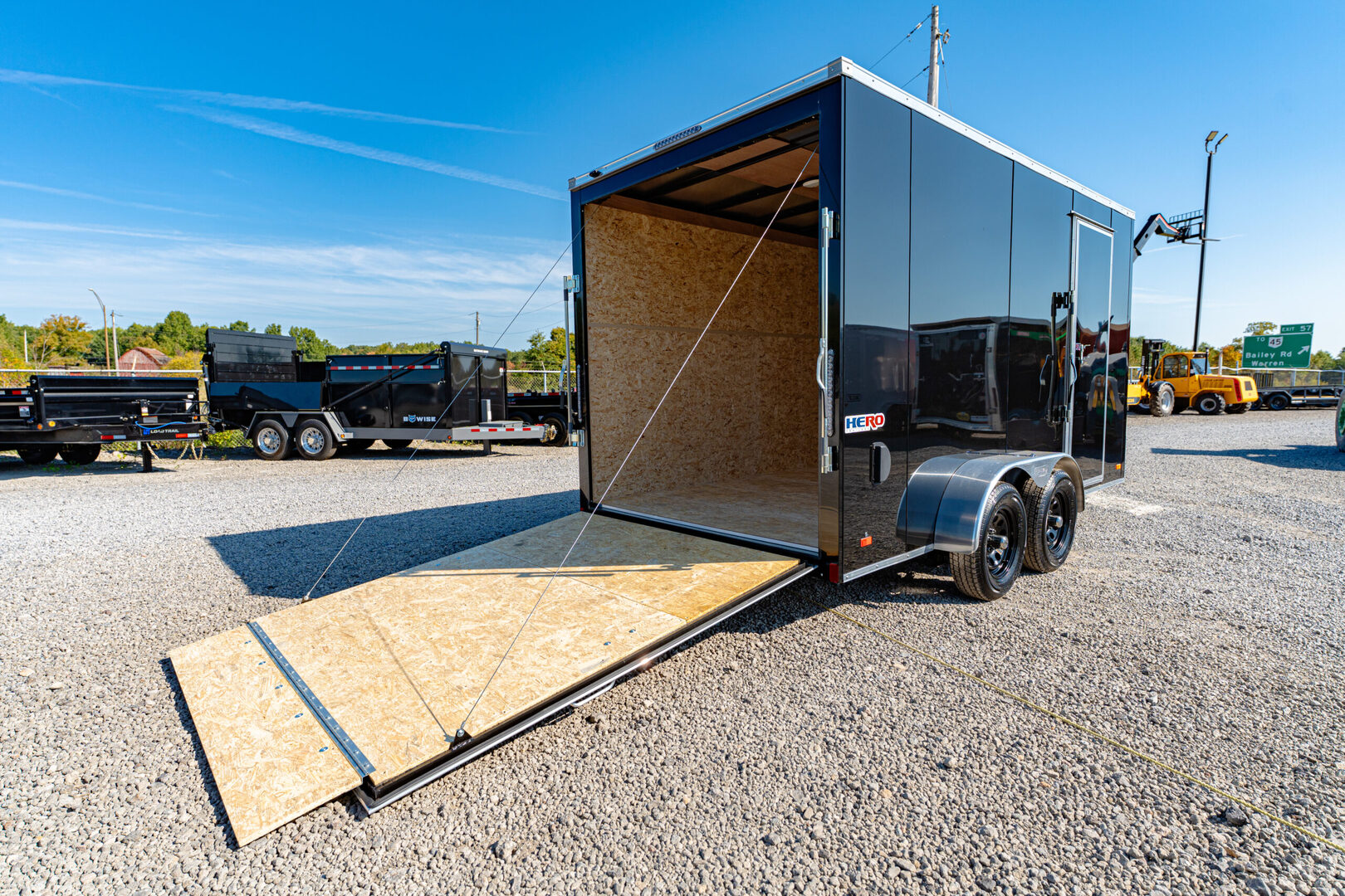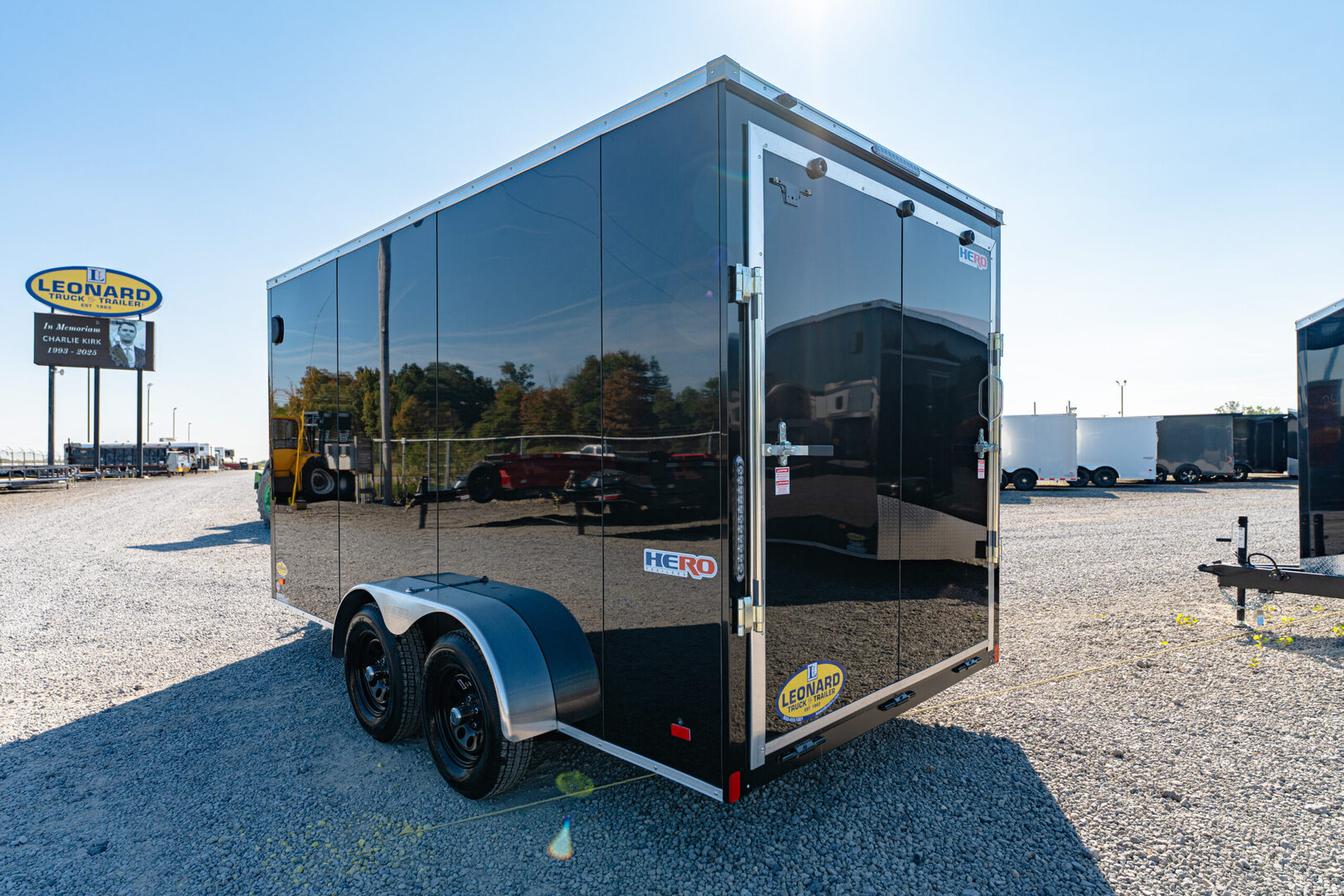 Stock# 44974 New 2026 Bravo HR714TA2 Enclosed Cargo Trailer  HERO TRAILERS deliver first class towing at an affordable price. Every Hero Trailer is designed and constructed to give you years of safe, secure and hassle-free towing. Quality features such as .030 aluminum exterior skin over tube wall posts and Dexter EZ ride suspension make for easy, reliable towing. HERO TRAILERS are built better, tow better and will be worth more at trade in time. Model:HR714TA2 Warranty: 3yr-Limited Hero HR714TA2 Enclosed Trailer Chassis & Frame 3500# Tandem Drop Spring Axle Electric Brakes 4” Tube Frame Tube Wall Posts @ 24” O.C. Tube Roof Members @ 24” O.C. Crossmembers @ 24” O.C. 2-5/16” Coupler – 14K Painted Tongue Jack w/ Sand Foot ST205/75R15 LRC 15” Radial Tires Black Mod Wheels Roof & Exterior Aluminum Roof .030 Exterior Metal 5” Screw Pattern 16” Stoneguard BLACK.030 Exterior Metal Lighting LED Strip Tail Lights – Clear Lens Bullet Style LED Clearance Lights Standard ID Light Bar at Rear (2) Dome Lights (Centered @ 4’ & 10’ Back) (1) 12V Switch at C/S Door Interior & Construction 3/8” Engineered Sidewalls 3/4” Engineered Flooring Medium Duty Ramp Door w/ Flap 32” C/S Side Door w/ Barlock (2’ Back, No Flushlock) Vents (1) Pair ABS Flow-Thru Sidewall Vents Front R/S High Rear C/S Low Upgrades & Options 30” Slant Wedge V Nose (HR 7W or 8.5W) ILO 30” V HR 6” Extra Height for .030 Metal (7’ or 8.5’W only)   We offer outstanding financing options, accept trades, and can arrange nationwide NO HASSLE delivery! Inquire today for more information! (888) 333-6613 **We believe these specifications to be accurate. Any discrepancies are unintentional. Please verify information with a sales associate prior to purchase.** Stock Number:44974