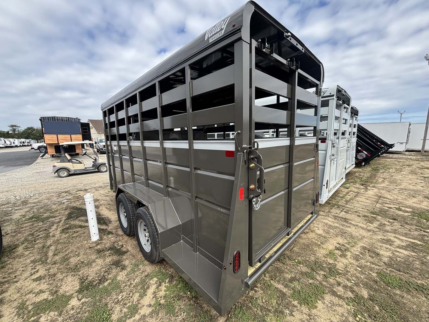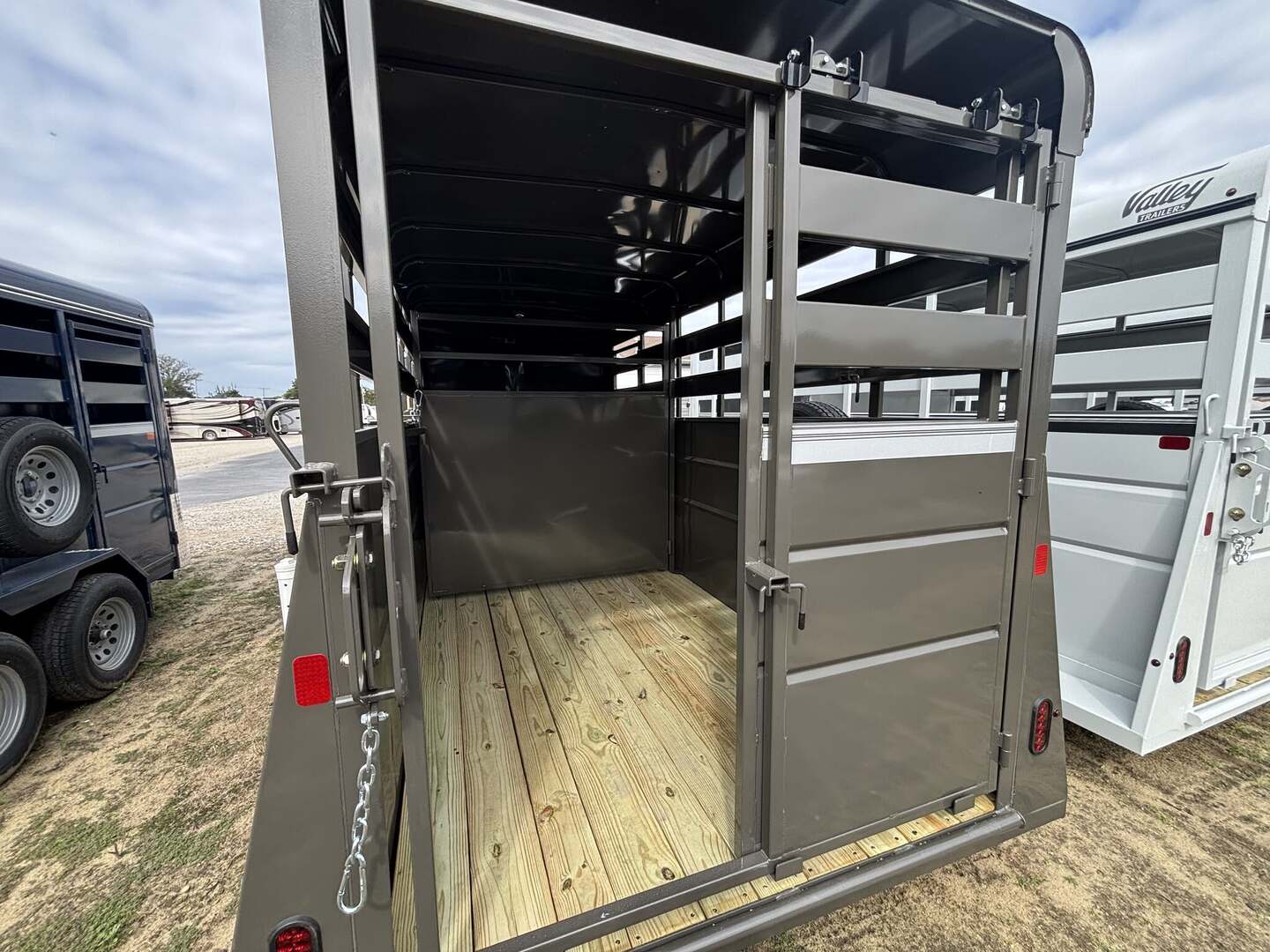 2025 Valley 6x12 Stock Trailer: Reliability Meets VersatilityIntroducing the 2025 Valley 6x12 Stock Trailer, engineered for reliability and tailored for versatility. This robust trailer is specifically designed to transport livestock safely and efficiently. With a spacious layout of 6 feet by 12 feet, it provides ample room for a variety of livestock, ensuring they are transported comfortably and securely.Built on a rugged steel frame, this trailer promises durability and longevity. The heavy-duty flooring is designed to withstand the rigors of the road, making it a dependable choice for all your livestock transport needs. Whether you’re moving cattle, horses, or other livestock, the Valley 6x12 Stock Trailer combines strength with functionality to deliver a smooth, dependable hauling experience every time.One of the standout features of this trailer is its customizable interior, allowing you to tailor the space according to your specific transport needs. The thoughtful design ensures that you’re ready for the challenges of livestock transport, whether it’s for a short trip to the show or a longer journey across state lines.The trailer features a gross vehicle weight rating of 3,175 pounds and a dry weight of 1,061 pounds, providing a generous payload capacity of 2,114 pounds. This means you can transport a significant amount of livestock without compromising on safety or comfort. Equipped with two axles and a bumper pull hitch, the Valley 6x12 Stock Trailer offers stability and control while on the road.For added convenience, the trailer includes one side door for easy access whenever you need to load or unload your animals. The exterior comes in a sleek silver finish, ensuring that your investment not only functions well but looks great too.With a height of 7 feet, width of 6 feet, and designed to handle various livestock sizes, the Valley 6x12 is both practical and efficient. As a new arrival in stock, this trailer is ready to elevate your livestock transport experience. Choose the Valley 6x12 Stock Trailer—where toughness meets innovation for your livestock hauling needs.