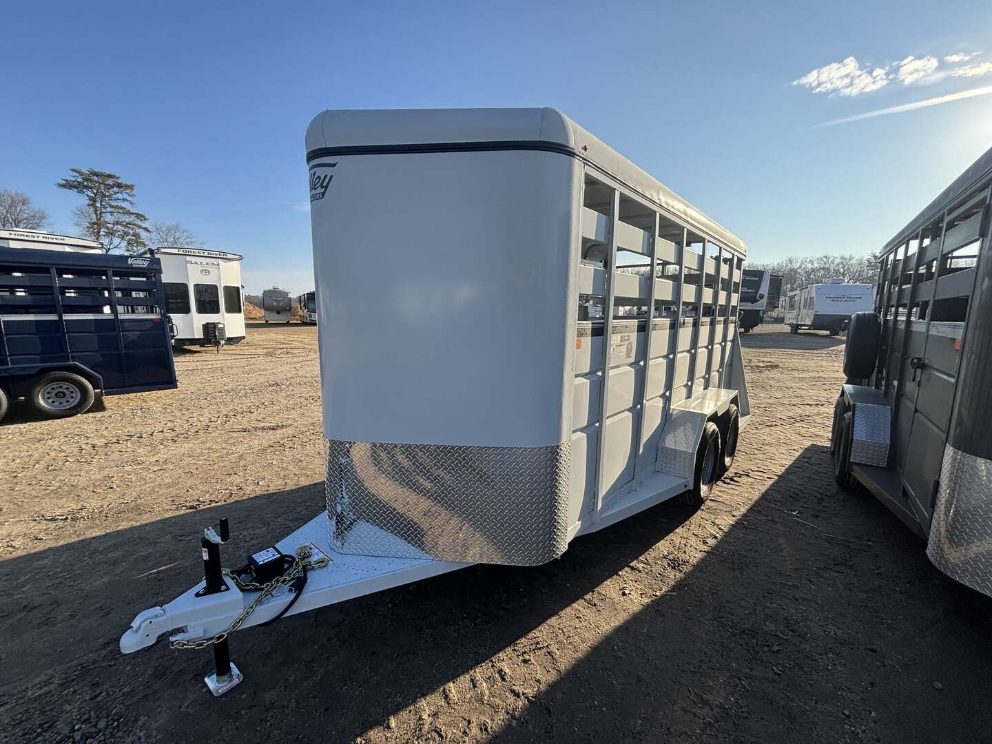 2026 Valley 6x12 Stock Trailer: Reliability Meets Versatility Introducing the 2026 Valley 6x12 Stock Trailer, engineered for reliability and tailored for versatility. This robust trailer is specifically designed to transport livestock safely and efficiently. With a spacious layout of 6 feet by 12 feet, it provides ample room for a variety of animals, ensuring they are transported comfortably and securely. Built on a rugged steel frame, this trailer promises durability and longevity. The heavy-duty flooring is designed to withstand the rigors of the road, making it a dependable choice for all your livestock transport needs. Whether you’re moving cattle, horses, or other livestock, the Valley 6x12 Stock Trailer combines strength with functionality to deliver a smooth, dependable hauling experience every time. One of the standout features of this trailer is its customizable interior, which allows you to tailor the space to your specific trtransportationeeds. The thoughtful design ensures that you’re ready for the challenges of livestock transport, whether it’s for a short trip to the show or a longer journey across state lines. The trailer features a gross vehicle weight rating of 3,175 pounds and a dry weight of 1,061 pounds, providing a generous payload capacity of 2,114 pounds. This means you can transport a significant amount of livestock without compromising on safety or comfort. Equipped with two axles and a bumper pull hitch, the Valley 6x12 Stock Trailer offers stability and control while on the road. For added convenience, the trailer includes one side door for easy access whenever you need to load or unload your animals. The exterior comes in a sleek silver finish, ensuring that your investment not only functions well but looks great too. With a height of 7 feet, a width of 6 feet, and designed to handle various livestock sizes, the Valley 6x12 is both practical and efficient. As a new arrival in stock, this trailer is ready to elevate your livestock transport experience. Choose the Valley 6x12 Stock Trailer—where toughness meets innovation for your livestock hauling needs.