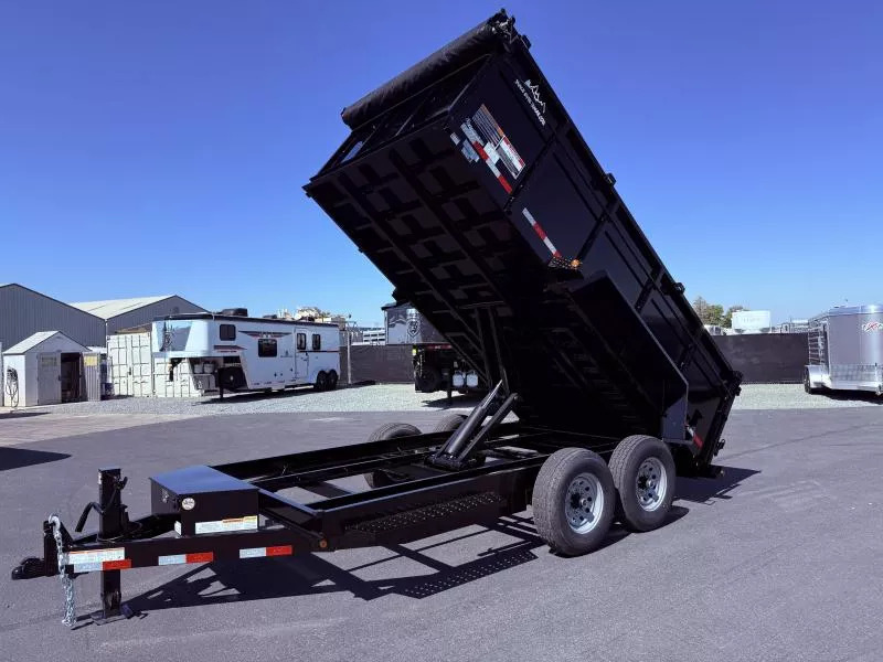2026 SRTC 7’ x 14’ Tandem Axle Bumper Pull Hydraulic Dump Trailer 14K GVWR with 3’ Tall Sides and Contractor Pkg. * Tandem 7K Brake Axles * ST235/80R16 8 Lug Wheels * Steel Tool Box on Tongue has Pump, Motor, and Interstate Battery plus corded Remote * 110v Battery Charger * Tarp Kit * 3’ Tall Sides * 2”x2” Heavy Duty Top Rail w/ Stake Pockets * Rugby Hydraulic Scissor Hoist * Double Rear Doors * 7’ Long Slide Out Rear Ramps * (4) Weld On D-Rings Inside * Spare Mount * Heavy Duty Fenders * Rear Load Stabilizer Legs * LED Lights * 2 5/16” Adjustable Coupler * Contractor Package: * 12K Jack * Tarp Sheild * 10 Ga. Floor * 12” Centers on Box Crossmembers Call D2 Trailer Sales 209-745-5480 or for more info www.d2trailersales.com