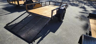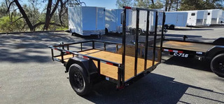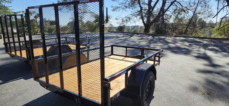AXLES: 1-3,500LB EZ LUBE, DOUBLE EYE SPRINGS COUPLER: 2” A-FRAME FENDERS: 16GA ROUND JACK: 2,000LB A-FRAME TIRES: ST205/75R15 RADIAL 6-PLY FLOORING: DOUG FIR LUMBER, SEALED FRAME: 3X2 ANGLE IRON TONGUE: 4” CHANNEL PAINT: VERSAHYDETM Polyurethane Enamel, High Gloss V5 Intermix, Black