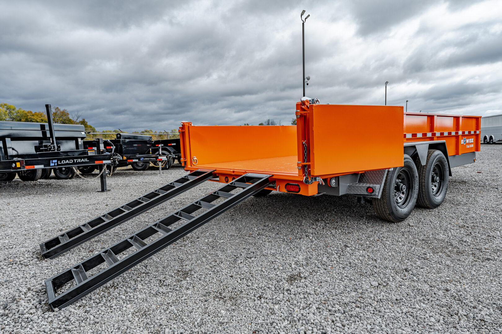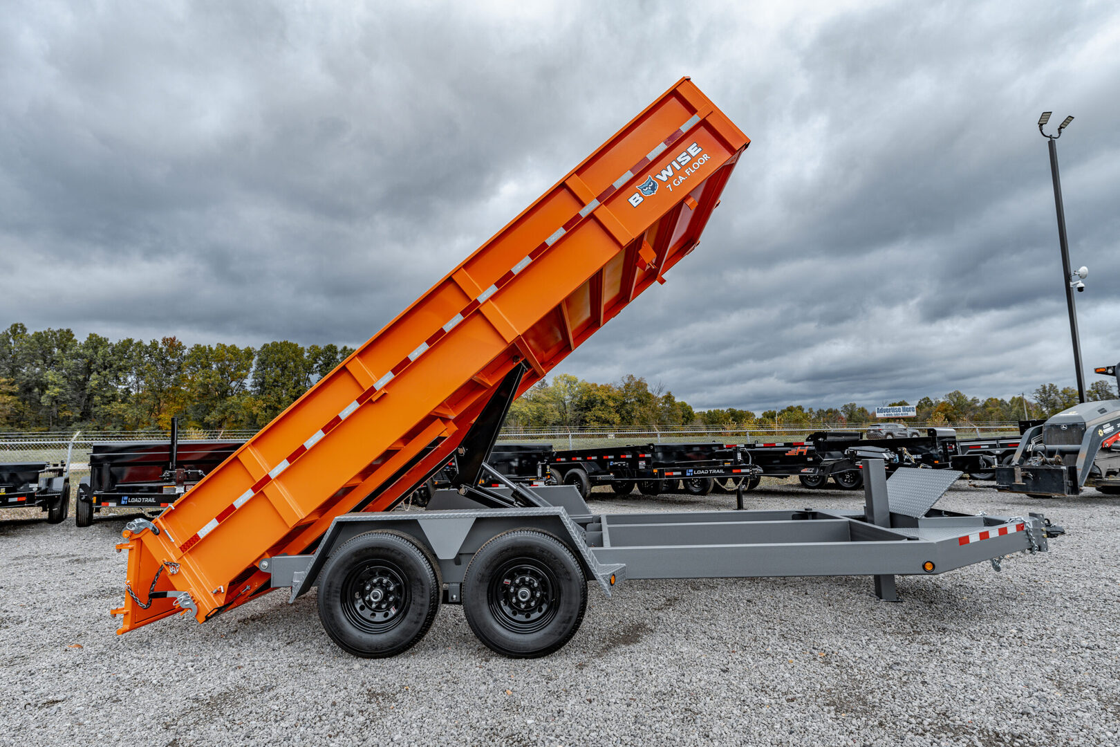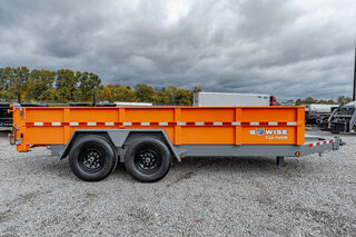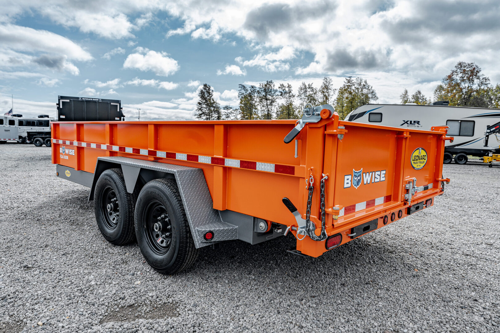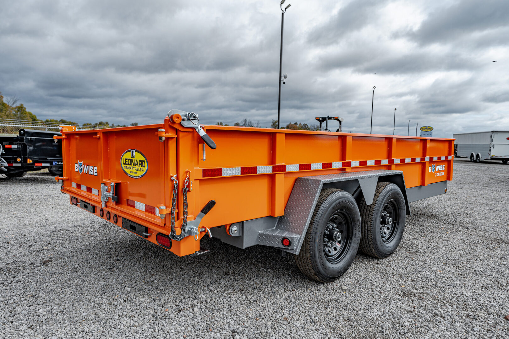 Stock# 45037 New 2026 Bwise DLP16-15 Dump Trailer The DT Channel Frame Low Profile Dump Trailers are the go-to low profile dump models for your homeowner and light duty commercial projects. With standard features to keep your dump trailer hauling projects moving easy and efficiently. Model:DLP16-15 Warranty: 2yr- Structural DLP15 – DLP16-15 Dump Trailer (Low Profile) General Color: Orange / H-Tone Gray Frame Model: DLP16-15 Low Profile Dump Dimensions: 82” W x 16’ L GVWR: 15,400 lbs Frame & Coupler Main Frame: 8” tube Coupler: 2-5/16” adjustable coupler Jack: Hydraulic jack Axles & Suspension Axles: (2) 7,000 lb SS tandem axles, electric brakes Tires & Wheels Tires: ST235/80R16E radial, black modular wheels Hydraulics & Battery Cylinder: HD hoist with 5” cylinder Battery: Group 27 deep cycle Battery Charger: Included Body & Tailgate Gate: 3-way combo (gate/ramps/D-rings) Floor: 7GA one-piece floor Sides: 12GA steel sides Additional Features Rear Stabilizer Jacks 7’ Bwise Tarp Kit (Orange)   We offer outstanding financing options, accept trades, and can arrange nationwide NO HASSLE delivery! Inquire today for more information! (888) 333-6613 **We believe these specifications to be accurate. Any discrepancies are unintentional. Please verify information with a sales associate prior to purchase.** Stock Number:45037