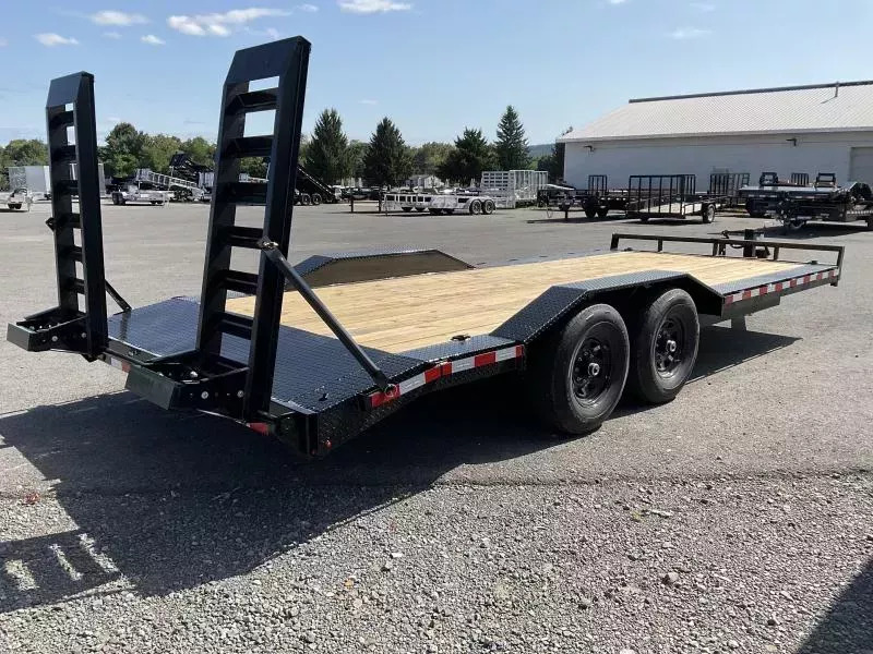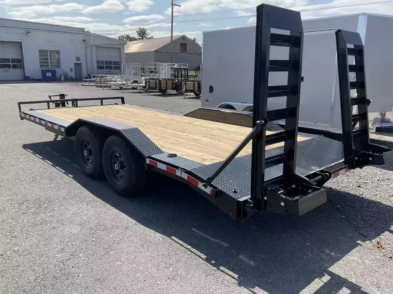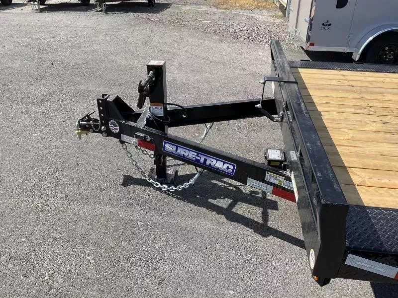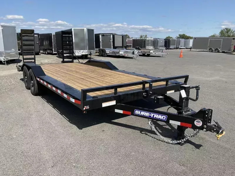 # Sure-Trac Full Width Equipment Trailer The Full-Width Equipment trailer is a versatile transport solution, available in various lengths to suit your specific hauling needs. With options ranging from shorter models for lighter loads to longer configurations that can handle bulkier equipment, this trailer adapts to a variety of situations. Key Benefits *** HD Tube Bulkhead Provides additional rigidity to the front end of the trailer as well as providing an extra level of comfort when loading equipment. *** Tread Plate Outriggers and Drive-Over Fenders Provides a full-width deck to accommodate vehicles with a wider wheel base or large tires. *** (4) D-Rings Securely tie down your cargo with these heavy-duty anchor points, providing extra stability and safety during transport. *** Stake Pockets and Rub Rail Enables you to customize the trailer’s configuration to meet your specific hauling needs, and provide support and a more finished look to the trailer. *** Spare Tire Carrier A convenient way of carrying a spare tire to ensure you are prepared for any unexpected road hazards. # Why Carr’s? We know you have choices when shopping for a trailer. Here are just a few reasons why Carr’s Trailers and Supplies is the best in the business: * Unbeatable Selection - with one of the largest trailer inventories in the Northeast, Carr’s is sure to have what you need in stock. We have cargo trailers, utility trailers, dump trailers, enclosed trailers, snowmobile trailers, ATV trailers, car haulers, tow dollies and tent campers by the 100’s * Honest Pricing - the price you see on the internet is the price you get in the store. With our buying power, we’re able to offer unmatched pricing on name brands such as Wells Cargo, Legend, Sure-Trac, Holmes, Mission and many others * Expert Advice - With over 20 years in the trailer business our team of experts will help you find the perfect trailer for your needs. We view ourselves as ”consultants” rather than ”salespeople” * One Stop Shop - We are a registered PennDOT agent for PA. That means we can do all the necessary paperwork for your trailer right at our counter. Many other places can’t do this so they send you somewhere else to get the paperwork done before you can even leave with your trailer! Not at Carr’s. You’ll be a fully legal towing machine when you leave our lot. (This process is quick too. Many times you can be in and out of the store in 30 minutes or less) * Post-Sale Support - So you bought a trailer. now what? At most places, you’d be on your own once the sales transaction is complete. Not at Carr’s! Our knowledgeable technicians will make sure that your vehicle is properly set up for safe towing before you leave the lot. Got a towing question? They’ll be glad to answer any you may have * Customizations - Need to haul a motorcycle in your trailer? Need e-track on the walls to secure your cargo? Need an extra dome light...or three? No problem! Our service department is able to add many options and perform many customizations. Most of them while you wait * Custom Trailers - Need something totally unique? Carr’s can work with you to have any trailer custom built. With our buying power, we can often get a custom trailer faster and for less money than other dealers * Parts and Accessories - We have a large showroom with 1000’s of parts and accessories in stock. We have a large assortment of repair parts for small single axle trailers all the way up to large tri-axles.