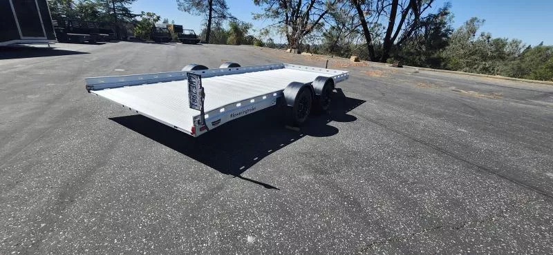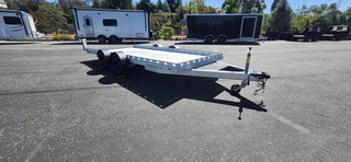 Aluminum lowering trailer with 3 degree approach angle. Unique patent pending logistic track built in frame,. Perfect for lightweight low cars, component options available to suit your needs.