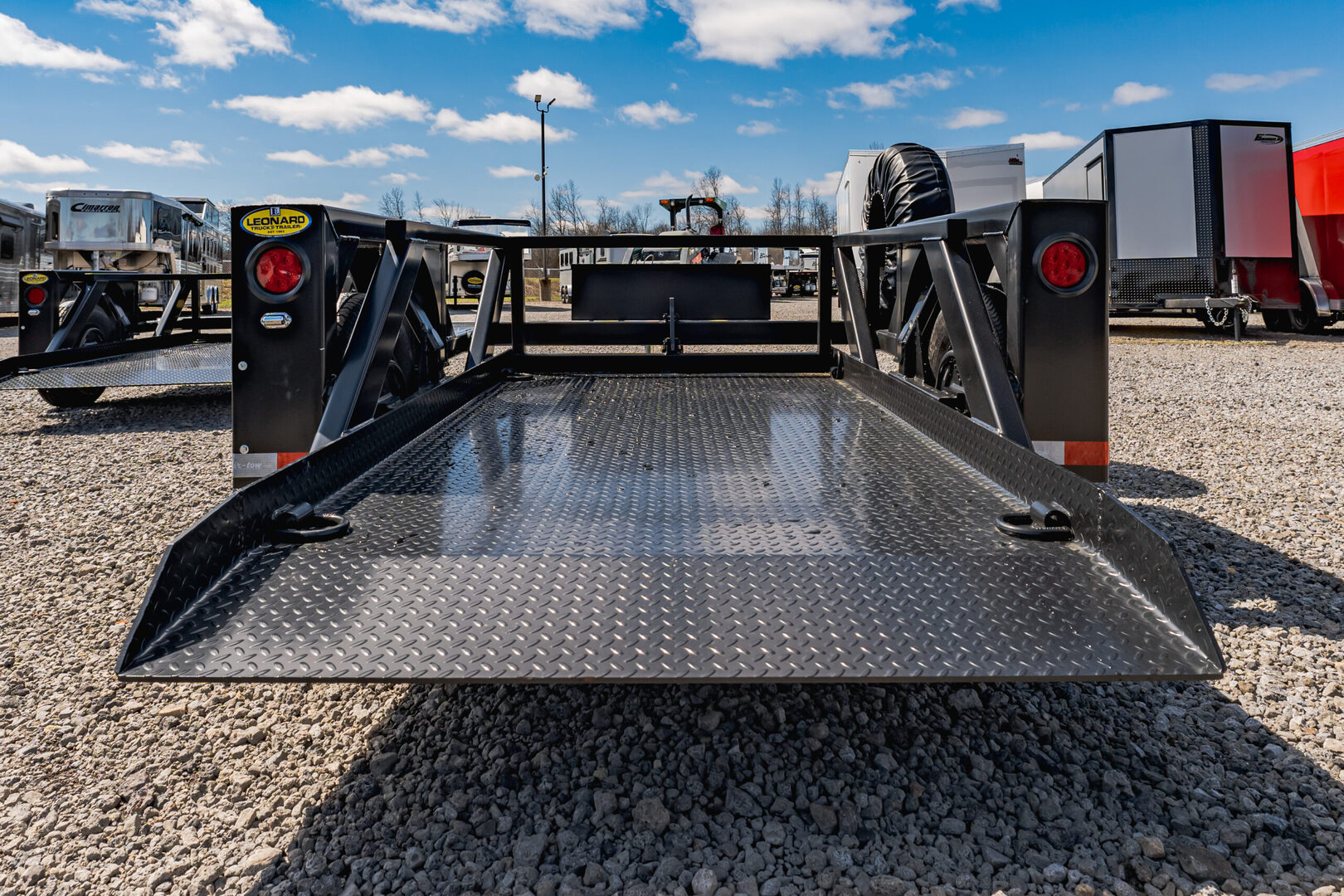 View Inventory: https://leonardtrailers.com/inventory/45053 Stock #45043 – New 2026 Air-Tow S8-35 Flatbed Trailer The Air-Tow S8-35 uses a unique hydraulic flatbed design that keeps the deck completely level as it raises and lowers in under 30 seconds, making loading safer and easier. Simply lower the deck to ground level and drive your equipment on—no ramps or tilt beds required. Ideal for equipment with low ground clearance or poor traction such as scissor lifts, sweepers, and pavement rollers. Designed for true one-man operation, even in adverse weather. Specifications & Features: Single axle flatbed trailer GVWR: 4,590 lbs Capacity: 3,500 lbs Deck size: 52” wide x 102” long (4’4” x 8’6”) Single axle with electric brakes 15” black steel wheels (spare included) Rubber suspension 2” ball coupler required Custom powder coat: Black 6-amp battery charger mounted in power compartment (110V plug-in) 15” spare tire with bracket assembly We offer outstanding financing options, accept trades, and can arrange nationwide NO HASSLE delivery. Inquire today for more information: (888) 333-6613 Specifications believed accurate; please verify details with a sales associate prior to purchase. Stock Number:45053