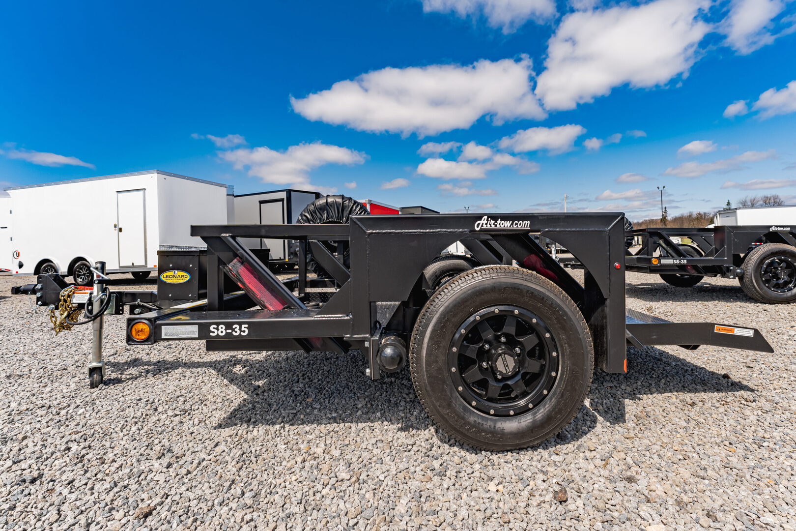 View Inventory: https://leonardtrailers.com/inventory/45060 Stock #45060 – New 2026 Air-Tow S8-35 Flatbed Trailer The Air-Tow S8-35 uses a unique hydraulic flatbed design that keeps the deck completely level as it raises and lowers in under 30 seconds, making loading safer and easier. Simply lower the deck to ground level and drive your equipment on—no ramps or tilt beds required. Ideal for equipment with low ground clearance or poor traction such as scissor lifts, sweepers, and pavement rollers. Designed for true one-man operation, even in adverse weather. Specifications & Features: Single axle flatbed trailer GVWR: 4,590 lbs Capacity: 3,500 lbs Deck size: 52” wide x 102” long (4’4” x 8’6”) Single axle with electric brakes 15” black steel wheels (spare included) Rubber suspension 2” ball coupler required Custom powder coat: Black 6-amp battery charger mounted in power compartment (110V plug-in) 15” spare tire with bracket assembly We offer outstanding financing options, accept trades, and can arrange nationwide NO HASSLE delivery. Inquire today for more information: (888) 333-6613 Specifications believed accurate; please verify details with a sales associate prior to purchase. Stock Number:45060