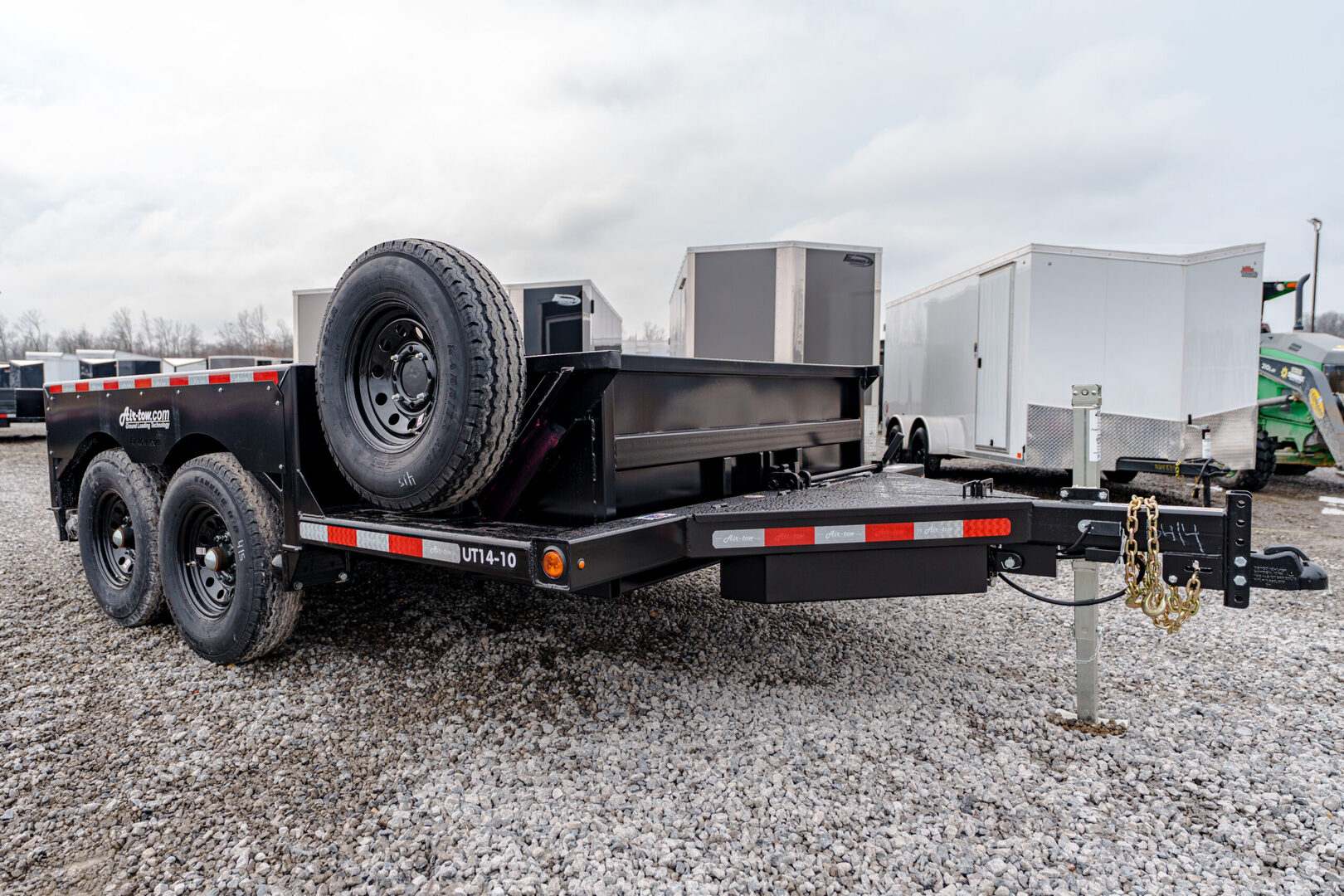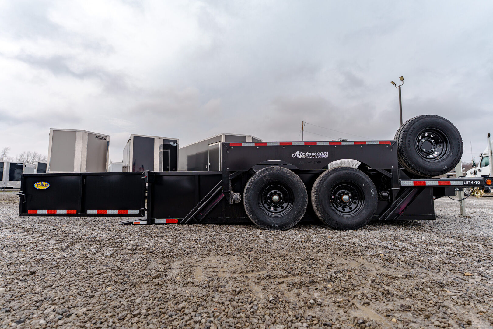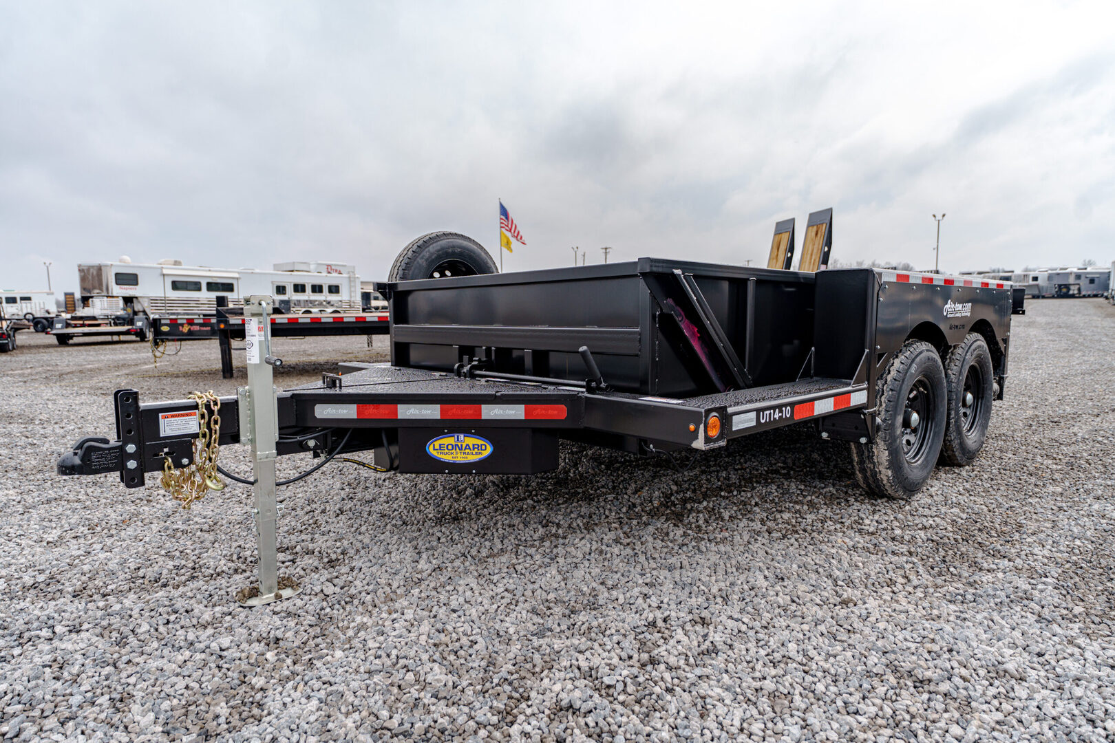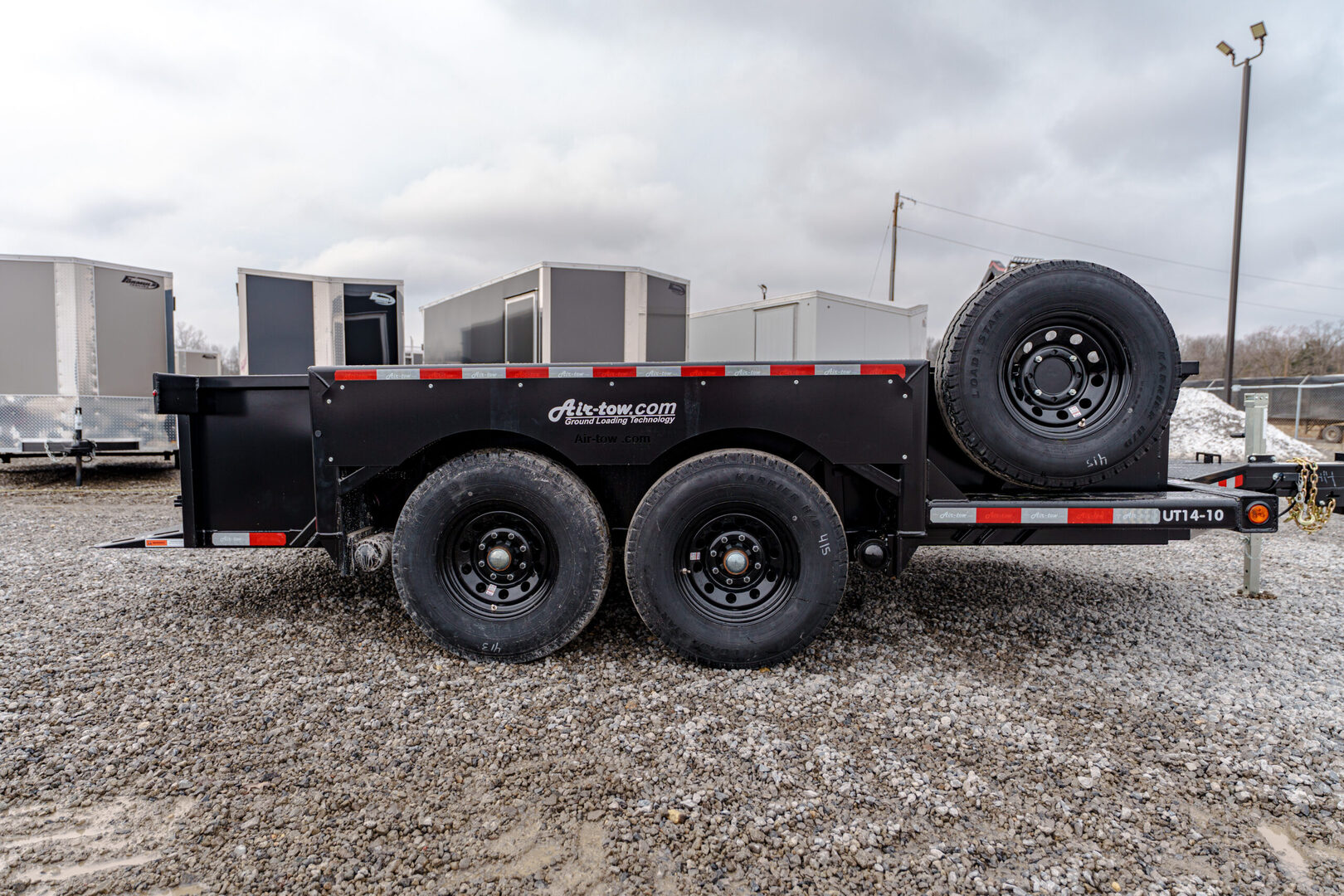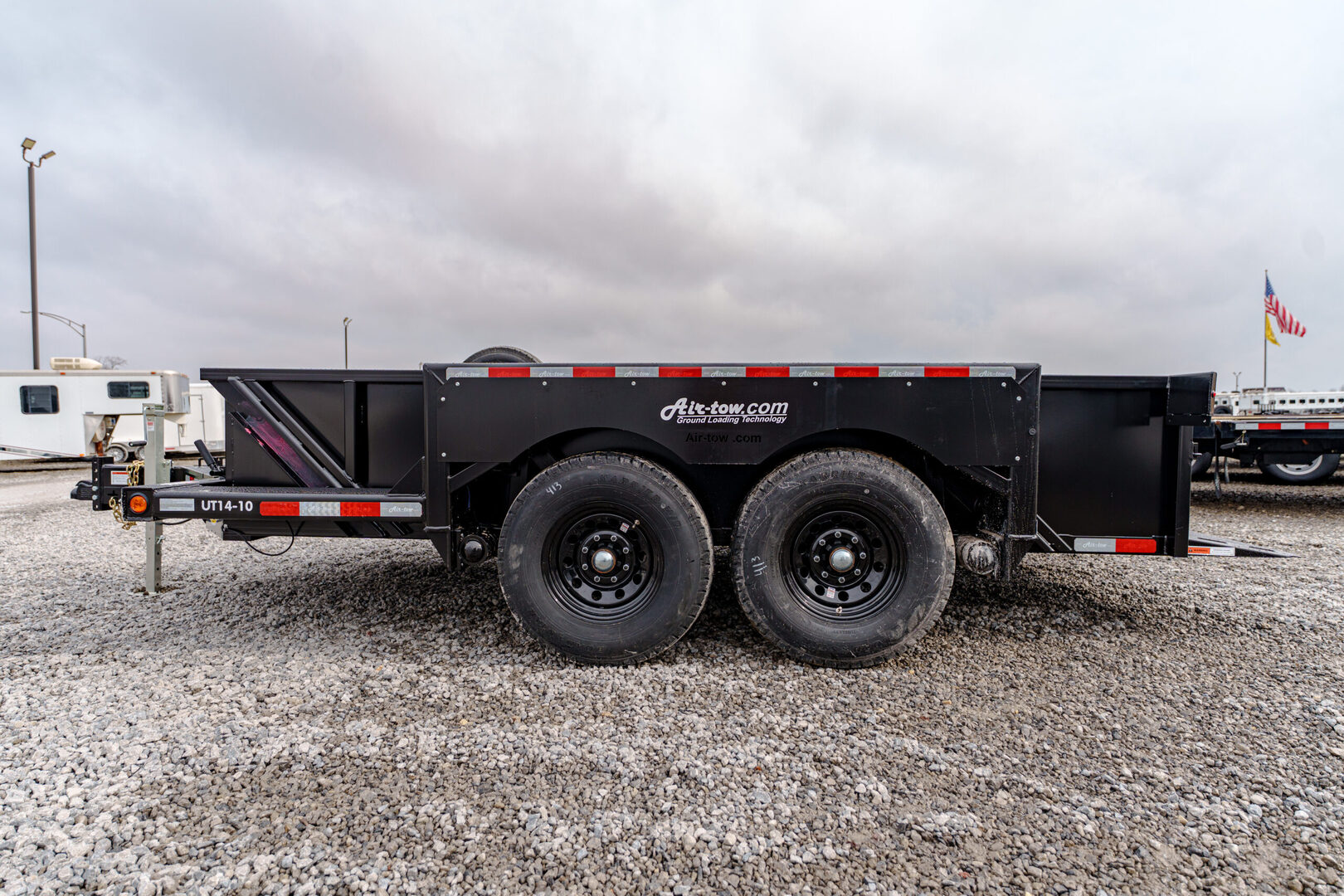 View Inventory: https://leonardtrailers.com/inventory/45057 Stock #45057 โ€“ 2026 Air-Tow UT14-10 Utility Trailer Tandem Axle Utility | Model: UT14-10 The Air-Tow UT14-10 offers the same innovative hydraulic lowering system as Air-Tow flatbeds, with the added convenience of sturdy side walls. The deck lowers to ground level for safe, easy loading, while the full-width, low-angle ramp allows smooth entry using a hand cart or dolly. Designed for versatility, Air-Tow Utility models offer a wide range of options to match your exact needs. Specifications: GVWR: 14,360 lbs Capacity: 10,000 lbs Deck Length: 14' Deck Size: 6'-3? (75?) wide x 14' (168?) long, including 18? ramp Tandem axle with electric brakes 16? wheels Features & Options: Custom black powder coat 16? black steel wheel tandem assembly (includes spare) 6-amp battery charger mounted in power compartment (plugs into 110V outlet) 16? spare tire bracket assembly 24? heavy-duty, side-swinging removable tailgate (Utility models only) We offer outstanding financing options, accept trades, and can arrange nationwide NO HASSLE delivery. Inquire today for more information! (888) 333-6613 We believe these specifications to be accurate. Any discrepancies are unintentional. Please verify all information with a sales associate prior to purchase.   Stock Number:45057