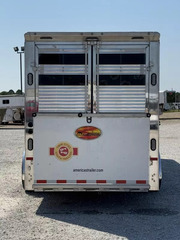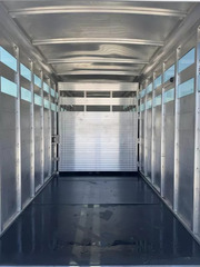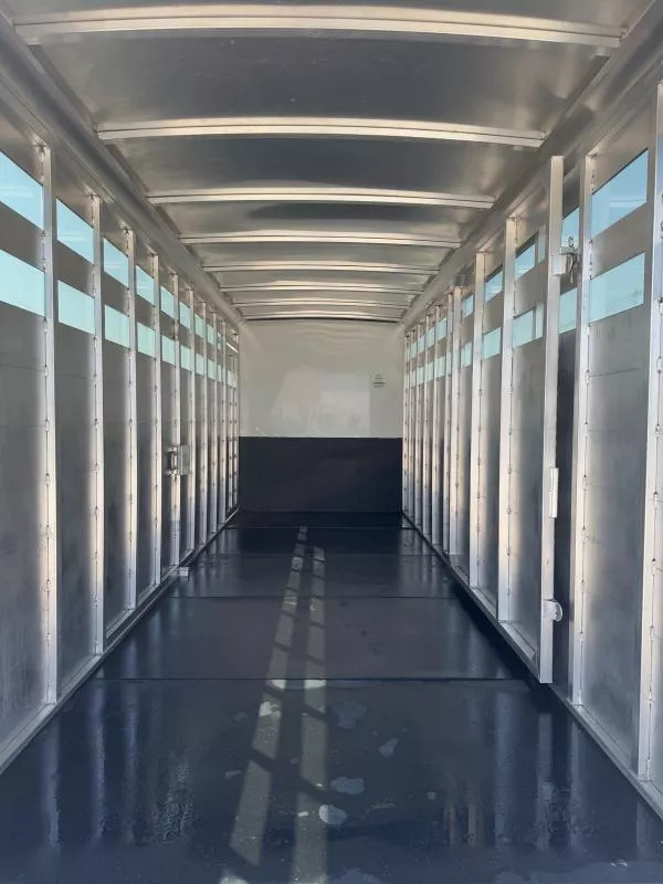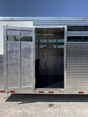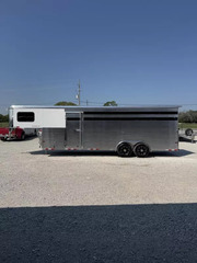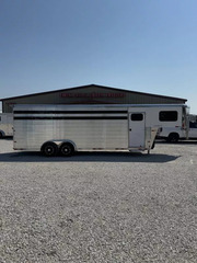 2024 Sundowner 24’ Stock Combo ALL ALUMINUM Gooseneck. Demo Trailer Never Titled 24’L x 7’6”T Stock area features - Rubber floor mats, Double rear doors with air spaces and plexiglass, forward escape door, air spaces x2 on all sides with removeable plexiglass, center cut gate with 2 air channels, LED load lights, comes with saddle rack and bridle hooks. Dressing Room - 48” Short wall, Camper style entry door with sliding window, LED light, 5’ Clothes bar, Halter hooks, carpet on bridle wall and nose, two windows in nose, rubber floor mats. Additional trailer features - ST235/80R16, Black aluminum alloy rims, Spare tire carrier, Spare tire with matching wheel, Single speed center leg jack, 2 5/16 coupler, electric brakes, rear load ramp, LED clearance lights, polished aluminum wave panel and roof rail, rear roof spoiler with 3 LED surface lights, 7,000lb rubber torsion axles, stainless wrapped nose. Professionally polished! Very sharp trailer! Trailer comes with full new factory warranty. Financing available with rates as low as 6.49 WAC- Nationwide delivery available - Trades welcomed Call our sales department at 940-365-9919 After hours calls/texts 612-381-6782