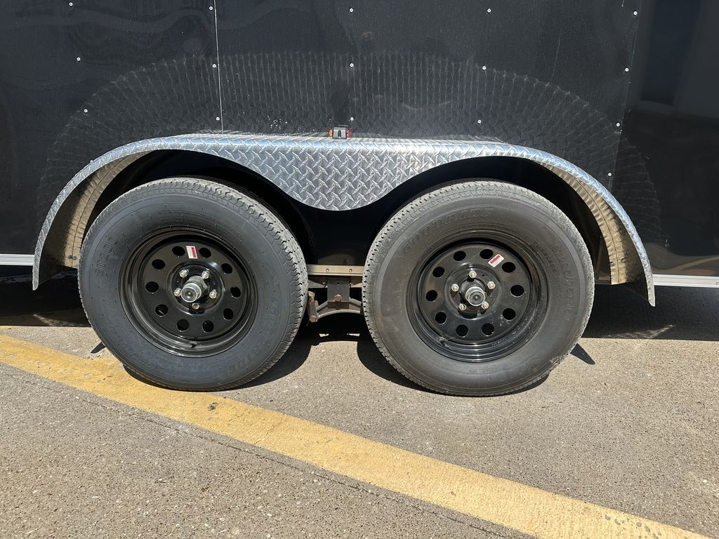 7’ x 16’ CGR CM + 6 in Interior Height 2 x 3,500 lb. EZ Lube 4 in Drop Axles 2 5/16 in Coupler Triple 2 in x 6 in Tongue .030 Aluminum Siding Side Post on 16 in Centers ATP Diamond Plate Fenders 6’ 8 in Interior Height Sloped Roof (Prevents Water from Sitting) 2K Jack 5 Hole Wheel ST 205 75 R 15 in Radials Dual Spring Assist Rear Ramp Door 36 in Side Door with Bar Lock and RV Latch Interior Spare Tire Mount ATP Front Stone Guard 3/4 in Treated Plywood Floors 3/8 in Plywood Walls Flow Through Vents Empty Weight: 2,490 lbs. GVWR: 7,000 lbs. Carrying Capacity: 4,510 lbs.