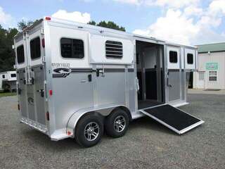 2025 River Valley 2H GN w/Dress + Side Ramp, 7’6”x6’8”, White Top/Champagne Bottom, Rear Ramp w/ Curtain Doors w/Windows, 5’ Side Ramp w/Curtain Door w/Window, Shelby Flooring, Loading Light, Light Over Side Ramp, Light in HA, 90” Stalls, (2) Escape Doors, Removable Partitions, Tubular Head and Shoulder Dividers, Pass Through Door, Window in Dress Wall, Washable Floor in Dress,(2) Lights in Dress, (2) Saddle Racks, (2) Boot Boxes, Brush Box, Spare Tire GVWR 9950, Empty 4960, Carry 4990