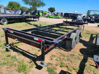 Dimensions & CapacityDeck Size: 85” x 20’GVWR: 14,000 lbsTrailer Weight: 800 lbsPayload Capacity: 13,200 lbsAxles & SuspensionAxles: 2 × 7,000 lbTotal Capacity: 14,000 lbsConstructionFlooring: No floor (open-frame, container-ready)Frame Color: Black finishContainer Locks: 4 (one at each corner)Stability & SupportStabilizer Jacks: 4 (one at each corner)