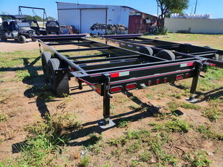 Dimensions & CapacityDeck Size: 85” x 20’GVWR: 14,000 lbsTrailer Weight: 800 lbsPayload Capacity: 13,200 lbsAxles & SuspensionAxles: 2 × 7,000 lbTotal Capacity: 14,000 lbsConstructionFlooring: No floor (open-frame, container-ready)Frame Color: Black finishContainer Locks: 4 (one at each corner)Stability & SupportStabilizer Jacks: 4 (one at each corner)