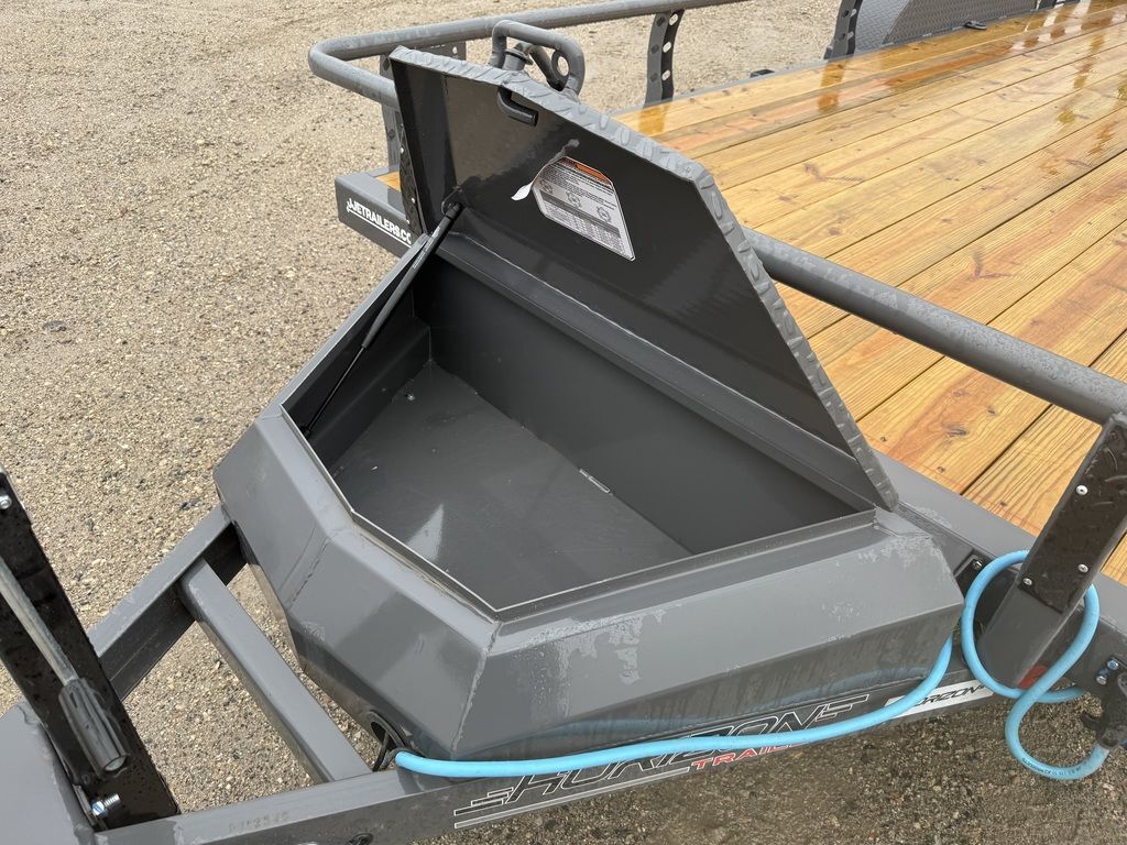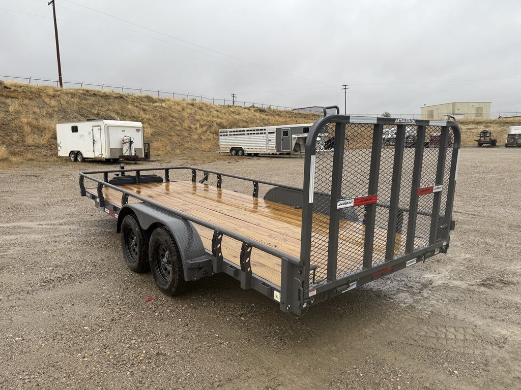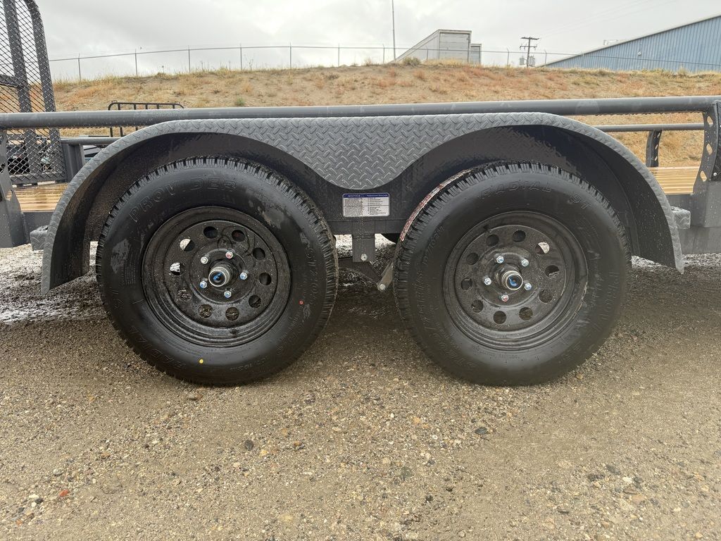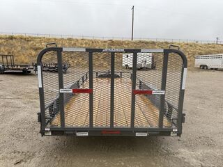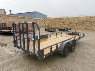 Bumper Pull2 - 3.5K Lippert Electric Brake EZ Lube Spring AxlesST205/75R165Tires (6 ply) w/Black Mod WheelsWeld On Spare Tire Mount2” Adjustable BP Coupler (10K)1 Side Wind Drop Leg Jack (7K)1 - 4’ High Ramp Gate 2” x 2” x 11ga. Tube Frame14ga. Diamond Plate Tear Drop Style Steel FendersReinforced 2” 10ga. Round Tubing Railing1 ?” x 3 ?” Stake Pockets2 D-Rings4” I-Beam Frame2” x 2 1/2:” x 3/16” Angle Iron 20” Spacing CrossmembersPine Lumber FloorDOT Approved LED LightsAll-Weather Wiring Harness (7-Way RV)Powdercoat Ash Gray