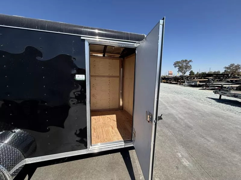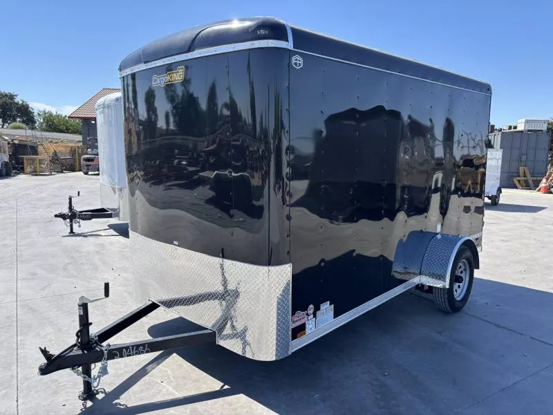 2026 Cargo King DE612SA Specifications: * Dimensions: 6’ x 12’ * Empty Weight: 1,300 lbs * GVWR: 2,990 lbs * Payload Capacity: 1,690 lbs * Upgraded Feature: 6” additional height This single-axle enclosed trailer features a durable design and a range of standard equipment to meet your needs. The electric brakes with a breakaway switch and radial tires ensure safe, reliable towing. Access is simple with medium-duty ramp door, recessed floor-mount 2,000 lb D-ring tie down, additional height 6” and the .030 aluminum exterior provides a clean, professional finish. Standard Features: * Radius fiberglass front cap * Galvanized roof * 24” stoneguard * Clear lens LED clearance and strip tail lights * 2 interior LED dome lights with wall switch * RV-style side door * Leaf-spring axles * Undercoated frame