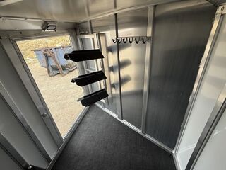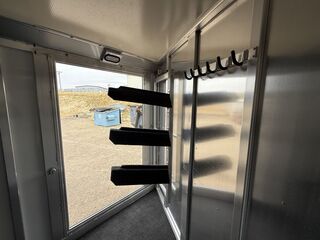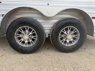 Gooseneck18’ 3” Floor Length2 - 6K Dexter Electric Brake Torsion AxlesSuspension Raised 2” with BlocksST235/80R16 TiresSpare Tire2 5/16” Adjustable GN CouplerRunning Boards Full Length of TrailerTwo DividersMats in Horse Area3 Pop Up VentsEscape Door in Front StallDrop Down Windows on FrontPlexiglass on RearRamp on Rear of TrailerCarpeted Tack/Dressing Room w/4’ Short WallSwivel Blanket Bars on DoorBrush Tray on DoorClothing Bar3 Tier Saddle RackBridle HooksFoot Locker w/Split Lid for StorageFrame Roof for A/CStandard LED LightsFlood Light at Rear and Dressing Room