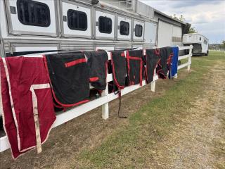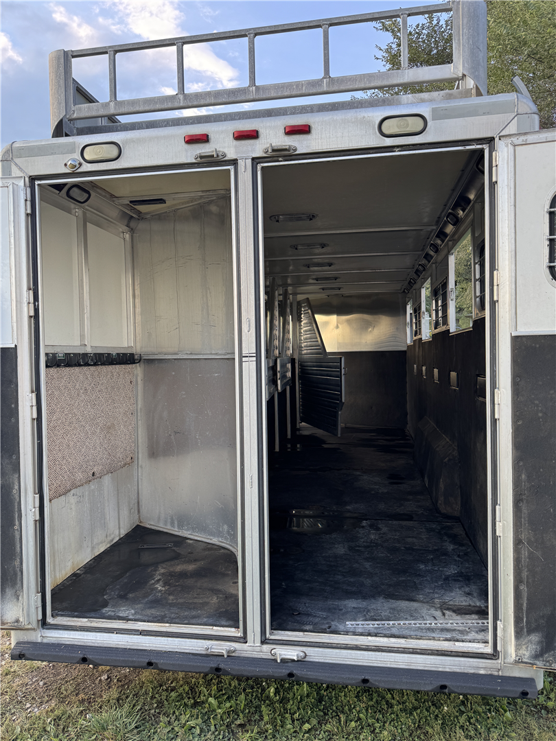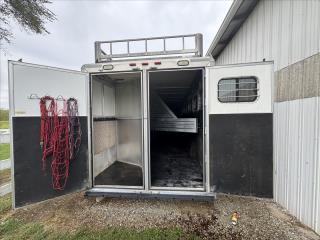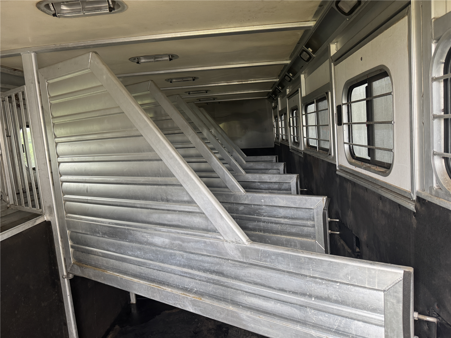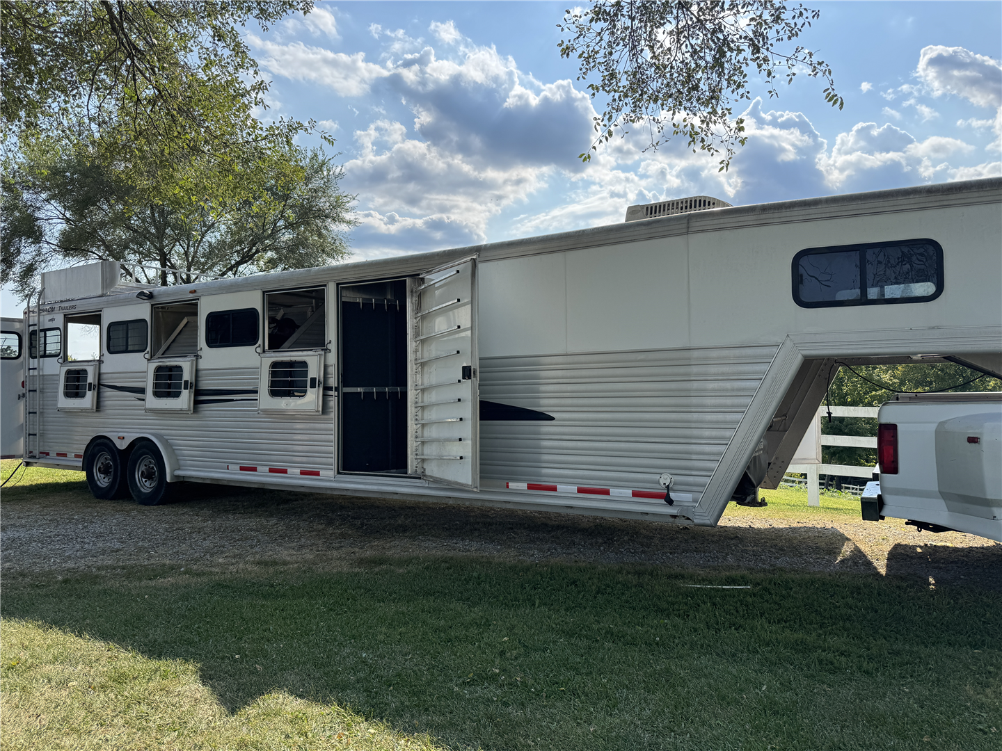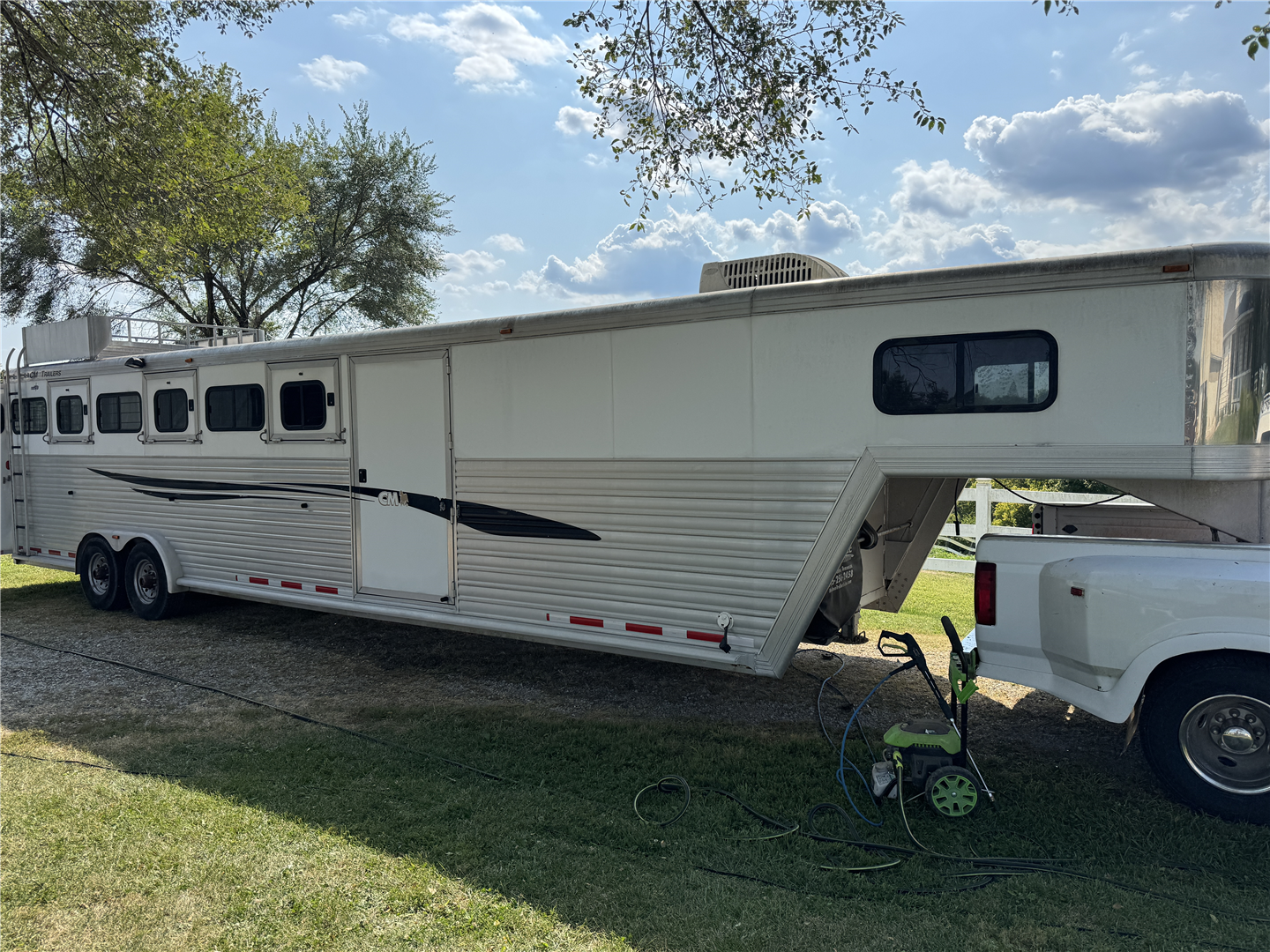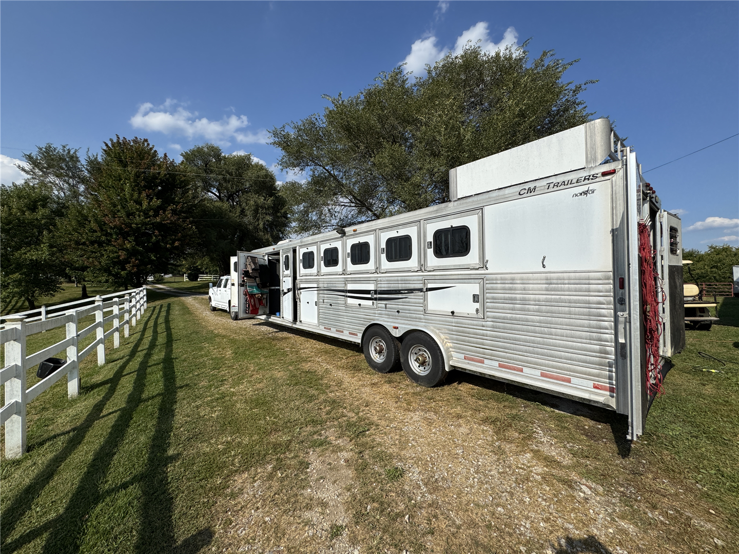 2003 CM Norstar 6 horse slant Gooseneck step up trailer. Aluminum 32' x 7' x 7.1. Excellent Trainer's trailer with tons of storage and tack area. Large Front dressing room with A/C and boot box, clothes rod, hooks etc. 2 mid-tack rooms with saddle racks, bridle hooks, brush box, Rear tack with bridle hooks, Escape door, Full floor mats in great condition and solid dividers. Drop down 6 head windows and 3 rear side windows for great air flow. Full hay mangers. Has under manger large storage compartments outside all long the full manger side. Very good condition. Only hauled a dozen times and has been parked since. A/C only used one time. Tires have good tread, but should be replaced for long hauls due to sitting for awhile.