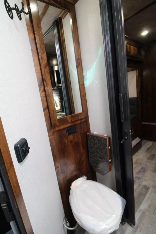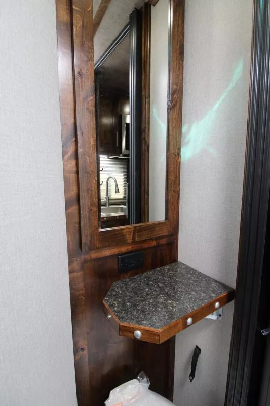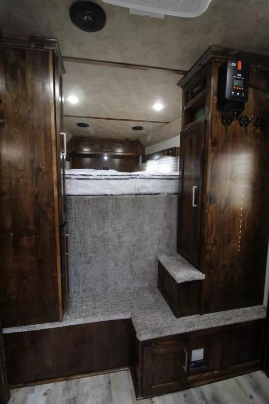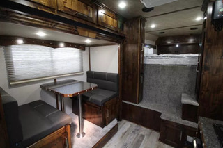 ***PICTURES ARE NOT OF ACTUAL TRAILER, FOR ACTUAL TRAILER FEATURES PLEASE REVIEW DESCRIPTION, COLOR OF INTERIOR COULD BE DIFFERENT OF ACTUAL TRAILER THAN PICTURES SHOW.*** Gooseneck, Slant Load, with Fold-Up Rear Tack Compartment and Fully Enclosed Horse Area. 8 ft Short Wall by 13 ft Long Wall of Living Quarter Space Upgrades: * Slide out * 320 Watt Solar * Exterior faucet * Glass Shower Door * Exterior Outlet * Pass Through Door * Escape Door * Stud Divider * Rollout Door Screen * Shower dome * Shower- Exterior * 2 Exterior Speakers * Convenience Package which includes; Spare tire, Water Tank, Door Mounted Organizer, Sport Bag, and Flood Lights on Each Side and rear. CONSTRUCTION & EXTERIOR * 24 x 48 Escape Window * 18 x 18 Window * Camper Door with 24” window * 7’0 Wide * 7’6 Tall * 8’0 Gooseneck * Slide-out * Retractable Step Under Camper Door * Power Awning * Hoof Grip Flooring in Horse Compartment * DRY WEIGHT IS APPROXIMATELY 9500LBS INTERIOR: * Soft Touch Ceiling * Synthetic Leather Sofa or Cushions * Day/Night Shades w/ Valances * Color coordinated interior * Vinyl floor w/wood print throughout * Hardwood Cabinetry (DARK COLOR) * * FRESH & WASTE WATER SYSTEMS * Low point fresh water drains * Demand type water pump * Combination locking water center * 30 gal. fresh water tank * 28 gal. black holding tank * 28 gal. gray holding tank * 6 gal. DSI water heater * Sewer hose storage compartment * Sewer hose and adapter GALLEY: * 2 burner cooktop with range hood * 4 cu ft. Electric refrigerator * Sink * Wood trimmed countertops * Flip up countertop extension * Microwave/Convection Oven HEATING/INSULATION * Dual 5 gal. propane tanks w/ auto changeover * Fully insulated floor, roof and walls * 18,000 BTU furnace (ducted to bathroom) * Air Conditioning SAFETY: * Locking water fill door * Fire extinguisher * CO/Smoke detector * L.P. detector * Alternate emergency exit BATHROOM: * 36 x 40 Shower stall with glass door * 12 volt exhaust fan * Fresh water flush toilet * Wardrobe Closet * (2) Drawers SLEEPING ACCOMMODATIONS: * Bedspread, pillows & shams * Dinette converts into a bed * Sliding dinette table top ELECTRICAL: * Locking battery box * 320 Watt Solar * Monitor Panel * 12 volt outlets * 110 volt outlets * 110V/12V power converter w/charger * 30 service cord * AM/FM stereo with CD player * TV antenna with power booster * Porch light by camper door * Lighted grab handle by exterior door * Recessed LED lighting ** Descriptions Subject to Error** For more information on this trailer please contact Double J Trailers at 360-225-1234. Thank You! Financing available to qualified buyers! All trailer prices are cash prices. Thank you! Trades Welcome Two Lots To Better Serve You! Woodland Washington & Albany Oregon We have over 250 trailers in stock. Please view our entire inventory at [www.double-j.com](http://www.double-j.com/) thank you! *Double J imposes a surcharge of 3% on credit card purchases of amounts greater than $500*