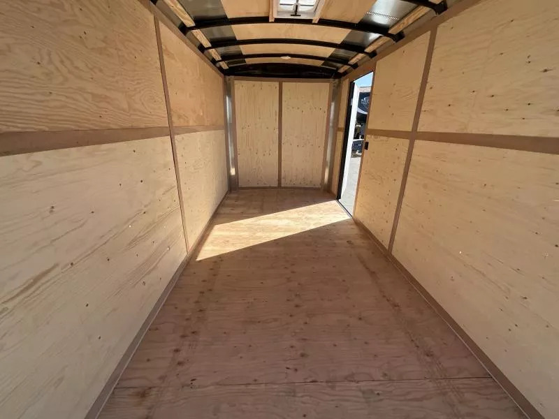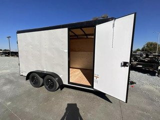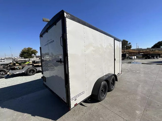 The 2026 Cargo King DE714TA2 is a durable 7’ x 14’ enclosed cargo trailer designed for various hauling needs. It has a Gross Vehicle Weight Rating (GVWR) of 7,000 lbs, an empty weight of 2,275 lbs, and a payload capacity of 4,725 lbs. This model comes with several standard features and optional upgrades to enhance its functionality and appearance. Key Features Upgrades: * Medium-Duty Ramp Door with Spring Assist: This makes loading and unloading heavy equipment much easier. * 6” Additional Interior Height: Provides more vertical space for taller items. * Pure Black Package: A cosmetic upgrade that gives the trailer a sleek, all-black finish. Standard Features: * Heavy-Duty Construction: Built with a durable undercoated steel frame, steel sealed sidewalls, and a galvanized roof. * Tires & Brakes: Includes radial tires on silver powder-coated wheels with chrome center caps. It has all-wheel electric brakes with a breakaway switch and battery for added safety. * Lighting: Equipped with clear lens LED clearance and strip tail lights, along with two interior LED dome lights and a wall switch. * Doors: Features double rear doors with a semi-style camlock latch and door hold-backs. An optional ramp is also available. A curbside RV-style door is included. * Exterior & Interior: The exterior has a .030 aluminum finish, a radius fiberglass front cap, and a 24” stoneguard. The interior walls are 3/8” plywood.